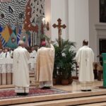 Queste le parole del Vescovo Carlo durante l’omelia: “È un momento ecclesiale importante quello che stiamo vivendo stasera perché siamo chiamati a ravvivare la nostra fede, come ci invita a fare la Parola di Dio che abbiamo appena ascoltato. Il primo monito viene dal Salmo: ‘Ascoltate oggi la luce del Signore’. Tutto parte da lì, dall’ascolto. L’ascolto può essere vuoto, come un vento che porta via ogni cosa, oppure può essere colmo di significato: in questo senso l’esortazione ‘ascoltate’ significa ‘fate di questa Parola la vostra vita’. Dunque il primo suggerimento di oggi è quello di rimetterci in ascolto della Parola di Dio. È chiaro che questa richiesta passa attraverso la nostra fatica, le nostre difficoltà. A volte abbiamo l’impressione che il Signore non ci ascolti nelle nostre fatiche, nel nostro essere Chiesa, nel nostro ministero sacerdotale, soprattutto ora, dopo l’esperienza pesante del Covid, anche per tutte quelle preoccupazioni del mondo, per quell’indebolirsi della fede di cui tutti siamo testimoni. Come fare allora? Nella prima lettura troviamo il primo suggerimento: il Signore ci invita all’attesa e alla perseveranza. Un’attesa che però non deve essere vuota, non è uno scaricare sul Signore quello che possiamo fare noi. Una seconda risposta ci viene dalla seconda lettura, dove San Paolo, per voce di Timoteo, dice a tutti noi: ‘Ravviva in noi quel dono’. Quel dono che abbiamo ricevuto nel Battesimo, il dono della Chiesa: la condivisione della fede, infatti, ci rafforza anche nella prova. Il terzo spunto che ci viene dalla Parola è quello di crescere nella fede, di passare dal rito alla vita. Prima di tutto dobbiamo pensare di più a noi, non agli altri. Poi dobbiamo imparare che il rito è un’espressione della vita, deve quindi portare alla vita: un rito senza fede non porta a nulla, come dice Isaia. Dobbiamo quindi evitare che il rito diventi vuoto sentimentalismo, perché non serve a nessuno.”
