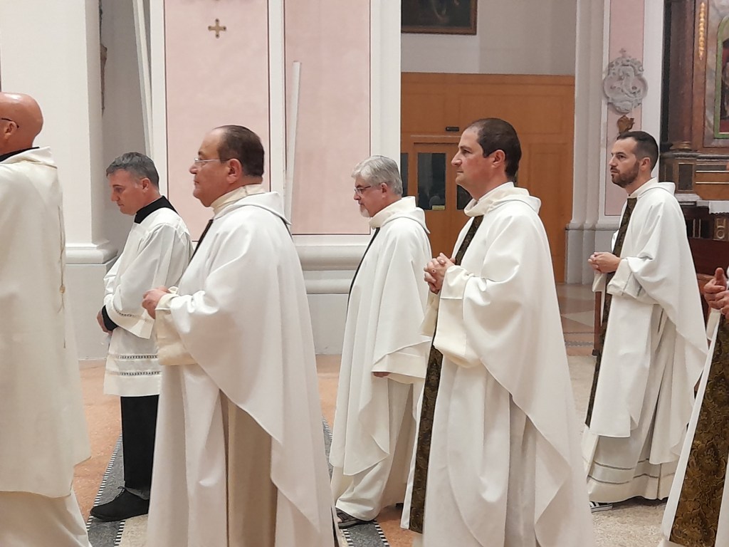 Queste le parole del Vescovo Carlo durante l’omelia: “È un momento ecclesiale importante quello che stiamo vivendo stasera perché siamo chiamati a ravvivare la nostra fede, come ci invita a fare la Parola di Dio che abbiamo appena ascoltato. Il primo monito viene dal Salmo: ‘Ascoltate oggi la luce del Signore’. Tutto parte da lì, dall’ascolto. L’ascolto può essere vuoto, come un vento che porta via ogni cosa, oppure può essere colmo di significato: in questo senso l’esortazione ‘ascoltate’ significa ‘fate di questa Parola la vostra vita’. Dunque il primo suggerimento di oggi è quello di rimetterci in ascolto della Parola di Dio. È chiaro che questa richiesta passa attraverso la nostra fatica, le nostre difficoltà. A volte abbiamo l’impressione che il Signore non ci ascolti nelle nostre fatiche, nel nostro essere Chiesa, nel nostro ministero sacerdotale, soprattutto ora, dopo l’esperienza pesante del Covid, anche per tutte quelle preoccupazioni del mondo, per quell’indebolirsi della fede di cui tutti siamo testimoni. Come fare allora? Nella prima lettura troviamo il primo suggerimento: il Signore ci invita all’attesa e alla perseveranza. Un’attesa che però non deve essere vuota, non è uno scaricare sul Signore quello che possiamo fare noi. Una seconda risposta ci viene dalla seconda lettura, dove San Paolo, per voce di Timoteo, dice a tutti noi: ‘Ravviva in noi quel dono’. Quel dono che abbiamo ricevuto nel Battesimo, il dono della Chiesa: la condivisione della fede, infatti, ci rafforza anche nella prova. Il terzo spunto che ci viene dalla Parola è quello di crescere nella fede, di passare dal rito alla vita. Prima di tutto dobbiamo pensare di più a noi, non agli altri. Poi dobbiamo imparare che il rito è un’espressione della vita, deve quindi portare alla vita: un rito senza fede non porta a nulla, come dice Isaia. Dobbiamo quindi evitare che il rito diventi vuoto sentimentalismo, perché non serve a nessuno.”