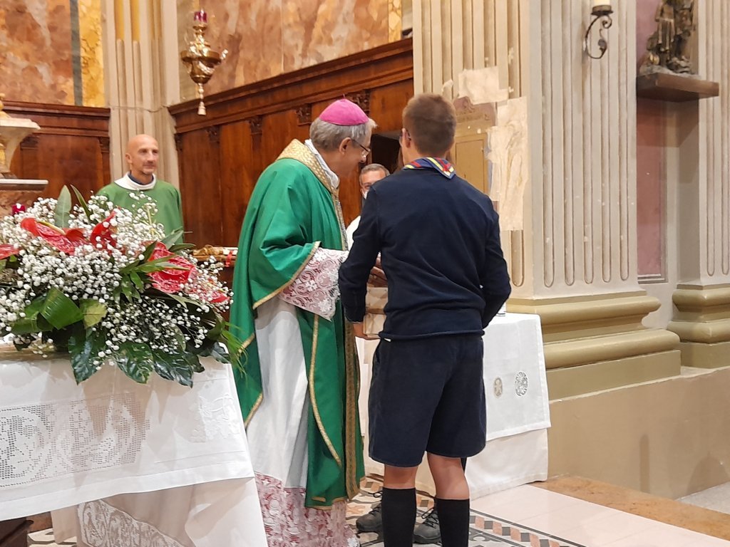 Al termine della Messa, don Giuseppe ha dato il benvenuto ufficiale al vescovo, consegnandogli un piccolo pensiero da parte della comunità, un cesto contenente le primizie del territorio, come simbolo della variegata realtà lavorativa del piccolo ma operoso paese: olio, vino, uva, mele, noci, uova e dolci. Il parroco ha poi illustrato il programma della visita, invitando i fedeli ad approfittare della presenza del vescovo Carlo fino dal 2 fino al 5 ottobre, per incontrarlo ed avere un colloquio con lui.