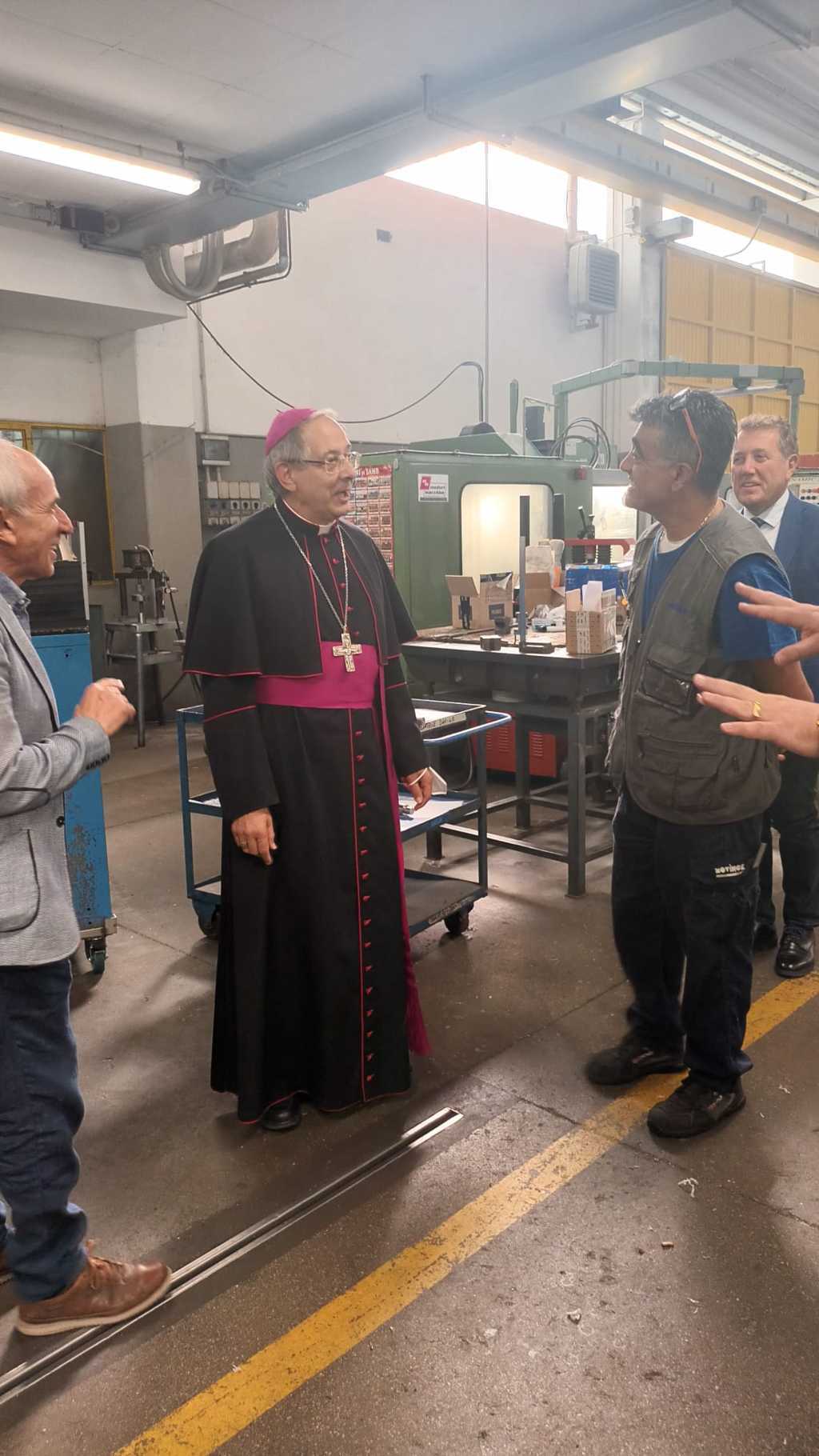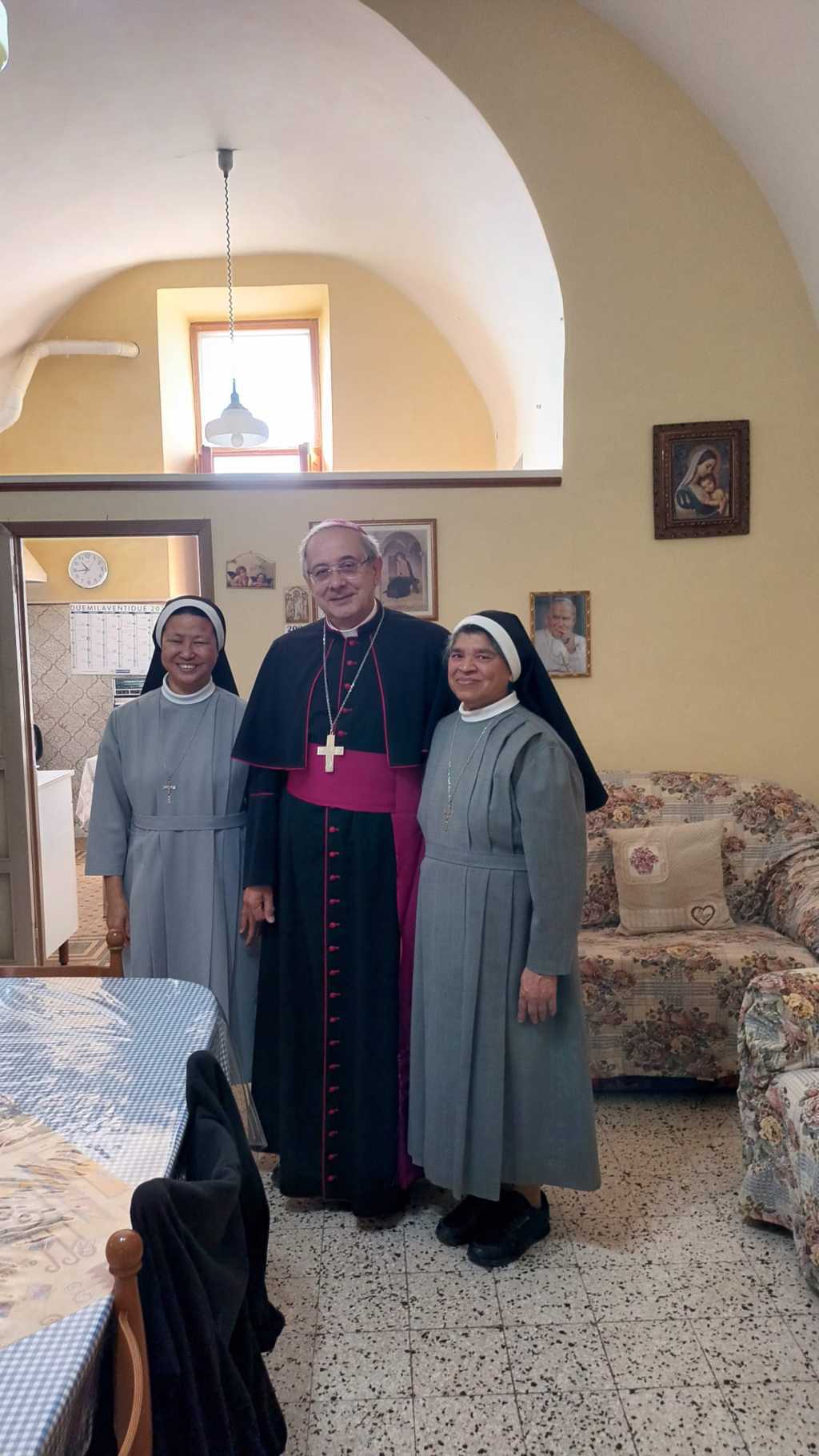 La giornata di lunedì 3 ottobre si è aperta con l’incontro, presso il convento di San Lorenzo, tra il vescovo e i religiosi, i frati agostiniani e le suore del Piccolo Fiore di Betania. Poi, sempre accompagnato dal Parroco, si è recato tra i piccoli della scuola dell’Infanzia, accolto da bimbi sorridenti e festosi che, insieme alle docenti e alla maestra di Religione, hanno espresso con un girotondo canoro la loro gioia per questa gradita presenza. Il pomeriggio è stato dedicato alla visita ad una nota azienda ubicata nella zona industriale nord del paese, come rappresentante del mondo del lavoro. Di seguito c’è stata la visita al domicilio di anziani e malati. Dopo la celebrazione della Messa vespertina, c’è stata la visita al gruppo sportivo di danza “La Koreutica” presso il palazzetto dello Sport. L’insegnante ha avuto premura di presentare la coreografia di un brano tratto da “La ricerca della Felicità”, estratto da uno spettacolo sull’XI canto del Paradiso della Divina Commedia, che rappresenta il matrimonio tra San Francesco e Madonna Povertà. A conclusione della giornata c’è stato un momento di incontro e conoscenza con i nuovi componenti del Consiglio Pastorale Parrocchiale e del Consiglio Parrocchiale Affari Economici. Il vescovo ha ricordato a tutti i presenti la peculiarità di questi organismi, che devono riflettere il loro essere in comunione con le linee di un cammino pastorale fecondo, facendo presente che la disponibilità data per questo servizio va vissuta come arricchimento non solo personale ma riversato verso tutta la comunità, come momento di corresponsabile aiuto al parroco e alla parrocchia. Ha ricordato inoltre che l’operato di un CPAE, che deve affiancare il lavoro del parroco soprattutto per le necessità materiali che inevitabilmente sono presenti in ogni parrocchia, deve avere come obiettivo, sempre, la legalità delle azioni che si accompagnano necessariamente allo svolgersi dell’aspetto amministrativo.