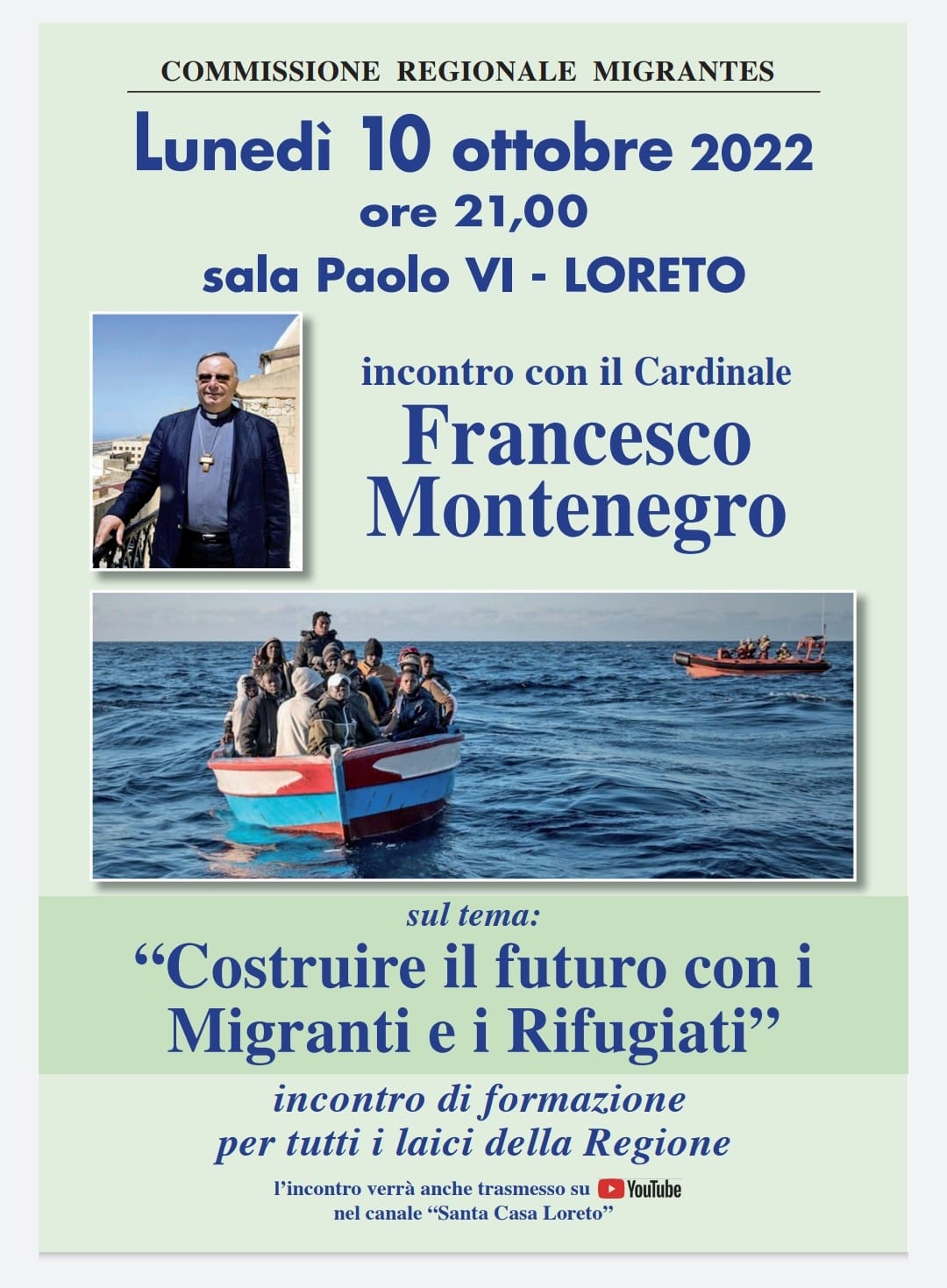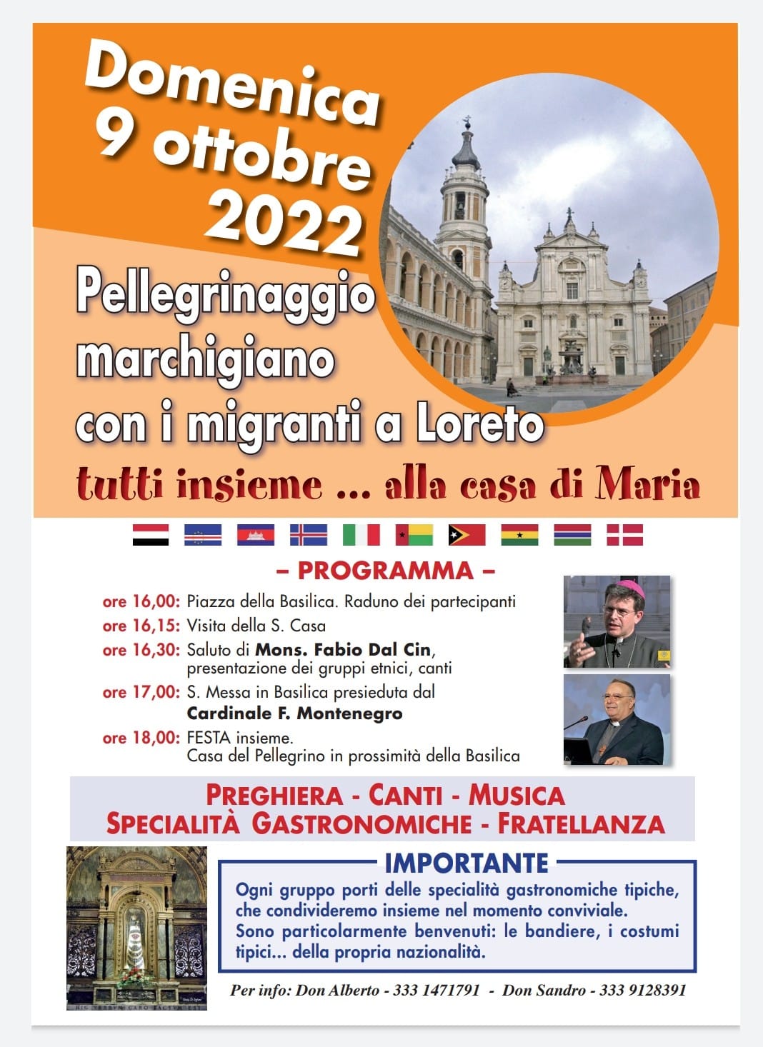 MARCHE – Da alcuni anni la Commissione Regionale Migrantes vive un gesto di Pellegrinaggio verso la Santa Casa di Loreto con le varie presenze cristiane di fratelli e sorelle migranti che animeranno la santa Messa presieduta dal Card. Montenegro, non sarà quindi un pellegrinaggio dei migranti ma con i migranti, così facciamo eco al messaggio del Santo Padre: “Costruire il futuro con i migranti e i rifugiati”. Siamo chiamati tutti coinvolgerci in questo gesto di fede e fraternità.