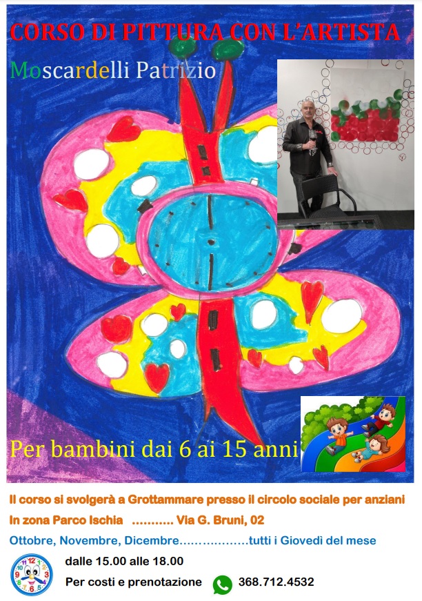 GROTTAMMARE – Prosegue a Grottammare il corso di pittura, rivolto per bambini e ragazzi dai 6 ai 15 anni, del maestro Patrizio Moscardelli.