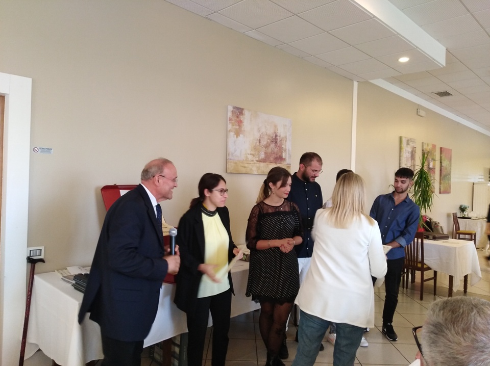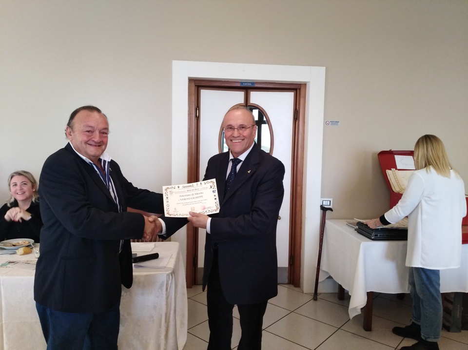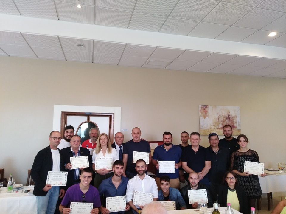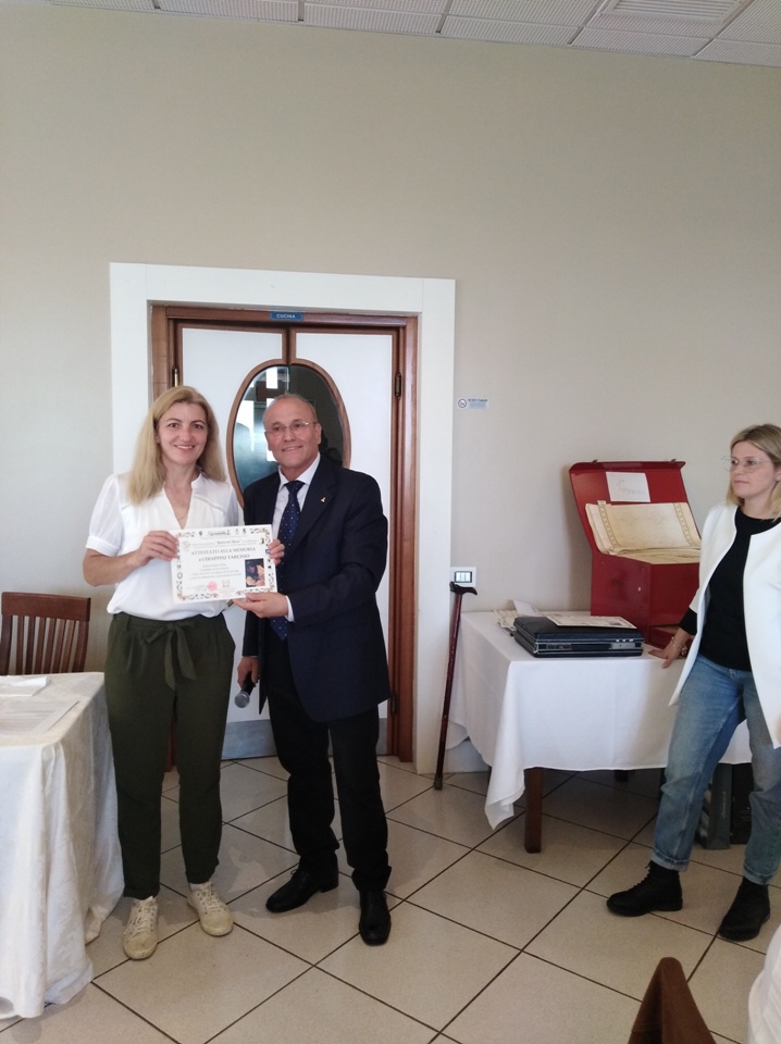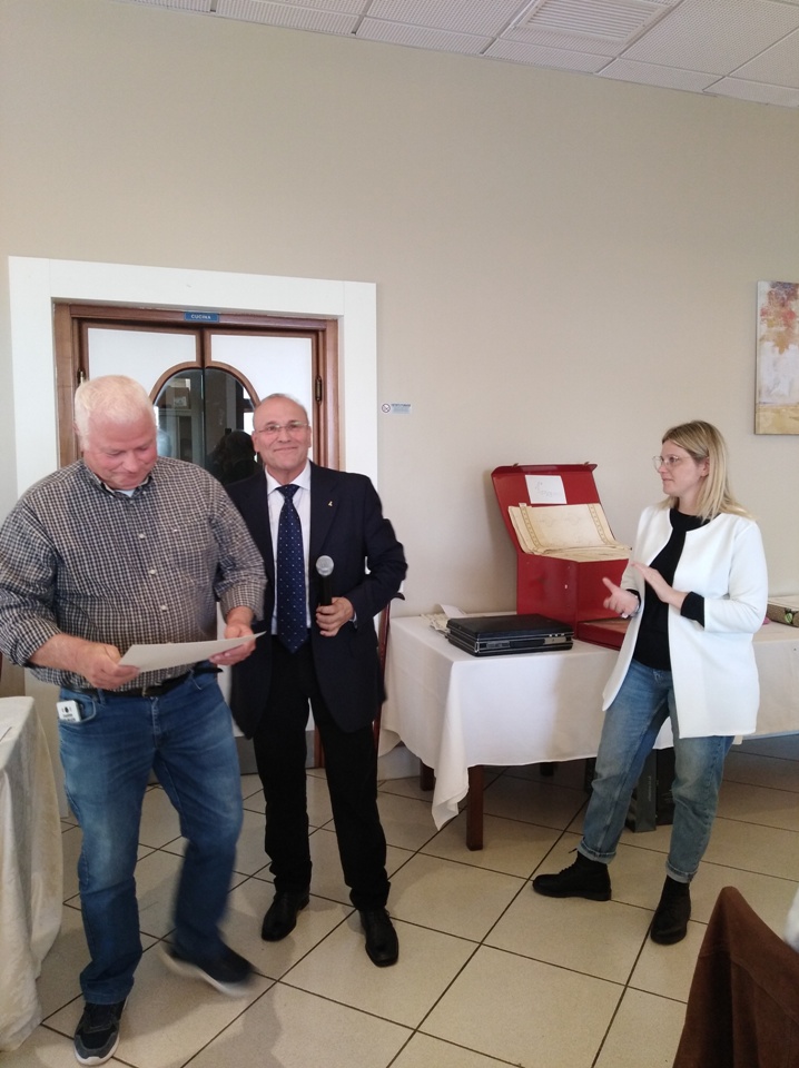 Dopo trentacinque anni è evidente che quelle idee e intuizioni fossero giuste e lungimiranti. Io ricordo con piacere il periodo in cui fui il presidente dell’Associazione Palio del Duca, il primo presidente, lo ricordo con grande orgoglio. Ho anche l’orgoglio di essere stato tra coloro che concorsero alla realizzazione dell’Associazione Marchigiana Rievocazioni Storiche, questa Associazione porta, tra l’altro, per Acquaviva ancora la mia firma. Stamattina ho ritrovato la tessera del Rione Civetta che risale al 1992, la tessere numero due, perché la numero uno ovviamente è quella di Nello. Questo per me rappresenta qualcosa di importante, porta con sé molti ricordi. Nell’Associazione Palio del duca negli ultimi anni sono un po’ assente perché mi sono dedicata ad altro, ma quando mi capita di accompagnare delle persone in giro per Acquaviva non manco di aggiungere un qualcosa di “romantico” quando racconto di Sponsalia, è un qualcosa che mi viene spontaneo tanto è l’affetto che ancora nutro per l’Associazione”. L’Assessore al turismo Spaccassassi ha detto: “Ringrazio Nello per l’invito. Porto i saluti del sindaco Infriccioli e di tutta la giunta. Voglio ringraziare anche io i ragazzi che si alternano in Fortezza perché questa estate ho potuto constatare la bravura, al gentilezza, la puntualità e la gentilezza che hanno. Vi do anche io l’appuntamento al 20 novembre preso al Sala del Palio per il convegno. Buon proseguimento”. Sono stati consegnati gli attestati ai presidenti e agli atleti dei due Rioni, sono stati consegnati gli attestati alla memoria di Tarcisio Chiappini e di Lorella Bianchini. È stato consegnato un attestato all’ex sindaco Pierpaolo Rosetti e un ricordo all’ex Assessore al turismo Barbara Riga.