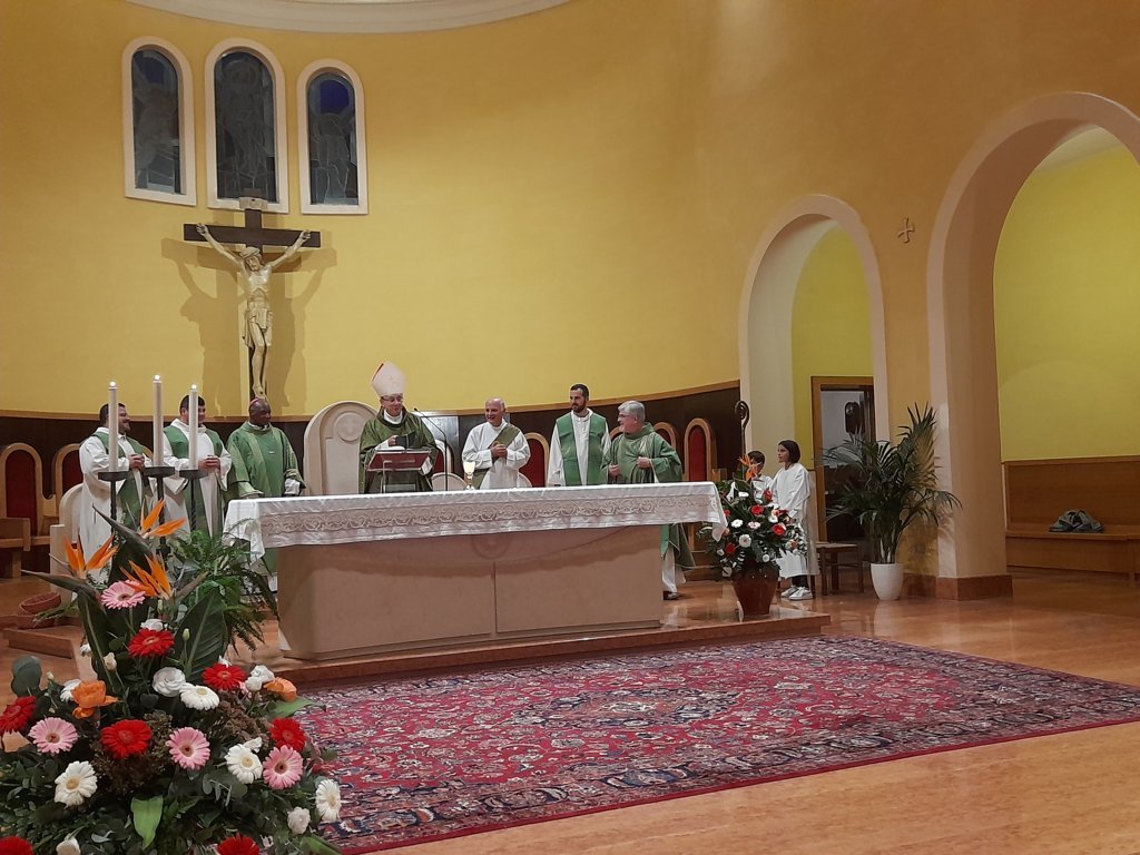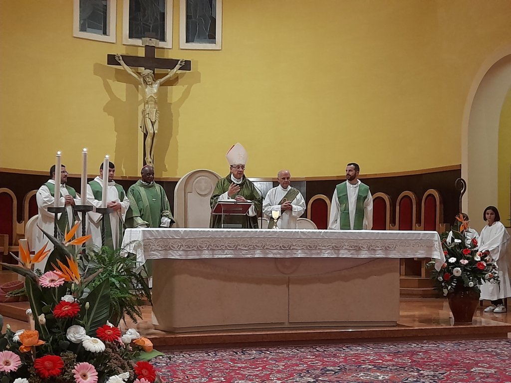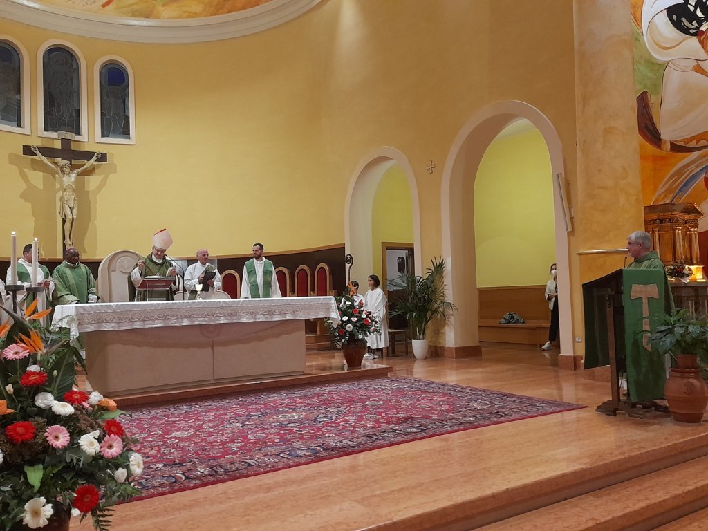 SAN BENEDETTO DEL TRONTO – Si è conclusa domenica 9 ottobre con la celebrazione delle ore 18:00 la visita pastorale che il Vescovo Carlo Bresciani aveva iniziato giovedì 6 ottobre nella Parrocchia di Sant’Antonio a San Benedetto del Tronto, guidata dal Parroco padre Massimo Massimi, con l’aiuto dei Vice-parroci padre Luca Atzeni e padre Ionut Totu. La Messa, presieduta dal Vescovo Bresciani, è stata concelebrata, oltre che dai Frati Minori Conventuali della Parrocchia, anche dal Vescovo emerito di Koudougou in Burkina Faso, Basile Tapsoba, che risiede in Italia da ormai oltre dieci anni.