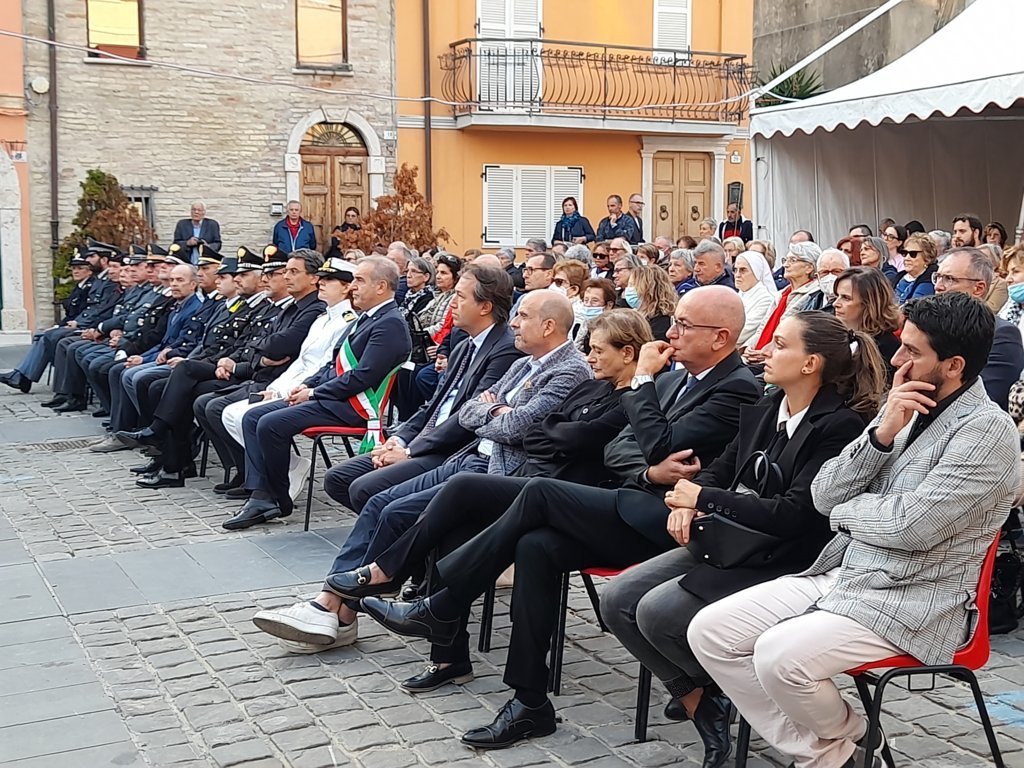 “Da qui nasce una domanda che oggi mi faccio e che pongo anche a voi qui presenti – ha proseguito il vescovo Carlo – quale anima ha la nostra città? E ancora: Che anima vogliamo darle? Siamo qui, autorità religiose, civili e militari, a celebrare il patrono della nostra città. Significa che tutti lo riconosciamo come fonte da cui trarre ispirazione non solo per la nostra vita personale , ma anche per la vita della nostra città. Significa che riteniamo fondanti i valori che hanno ispirato la vita di questo santo, che li riteniamo valori capaci di garantire la coesione sociale di cui ogni convivenza ha bisogno per la sua sussistenza. In questi tempi di secolarizzazione queste mie affermazioni potrebbero stupire non pochi nostri concittadini i quali non si identificano più nella fede cristiana che ha ispirato san Benedetto martire. Viviamo in una cultura caratterizzata da una forte indifferenza religiosa e da una molteplicità di riferimenti e credenze religiose. Certamente non viviamo più in una cultura che prende il cristianesimo come unico punto di riferimento. E questo vale sempre più anche per la la nostra città: le radici cristiane, pur non essendosi del essiccate, poiché molti nostri concittadini non hanno preso congedo dalla fede cristiana e dalla Chiesa, certamente sono da molti abbandonate e sostituite dai nuovi idoli che l’individualismo, il benessere e il consumismo pretendono di introdurre ritenendoli, a mio modo di vedere erroneamente, fondamento più sicuro per una vita felice. Non è qui il momento per una disamina adeguata di questi nuovi idoli, ma una domanda si impone: sono essi in grado di dare un’anima alla nostra città, capace di renderla coesa e solidale, come esige ogni convivenza umana? Oppure portano inevitabilmente a quella deleteria frammentazione individualistica che caratterizza le nostre società consumistiche, frammentazione che sta provocando chiare e indubbie difficoltà alla coesione sociale? La venerazione di San Benedetto, lungi dal portarci a qualche vaga intenzione di voler imporre una fede particolare cui ogni cittadino dovrebbe aderire (una fede senza libertà, in qualche modo imposta, non ha nulla a che vedere con il cristianesimo), trova fondamento sui valori umani, oltre che cristiani, che egli ha vissuto. Sono valori che hanno sapore di eternità, cioè che vanno al di là di un preciso tempo storico. Sono quei valori che San Benedetto martire, e noi con lui, ha riconosciuto come caratterizzanti il Dio di Gesù Cristo, valori che Gesù ha vissuto nella sua vita mostrando così dal vivo chi è Dio, a noi sempre tentati di distorcere il vero volto di Dio, per interessi non sempre chiari e non sempre facilmente confessabili. La Rivelazione biblica chiama Dio: verità, amore, giustizia, pace, fedeltà, misericordia, dono di sé… San Paolo nella lettera ai Filippesi così raccomanda ai cristiani di Filippi: ‘tutto quello che è vero, nobile, giusto, puro, amabile, onorato, quello che è virtù e merita lode, tutto questo sia oggetto dei vostri pensieri. E il Dio della pace sarà con voi’ (Fil 4, 8-9b). Sono questi i valori per i quali il nostro San Benedetto ha dato la vita, lasciandosi guidare dal suo amore per Dio e dalla parola di Gesù.”