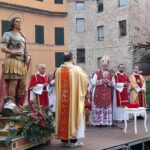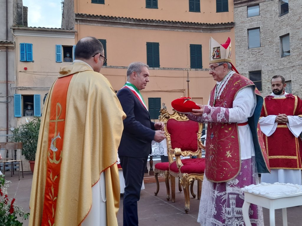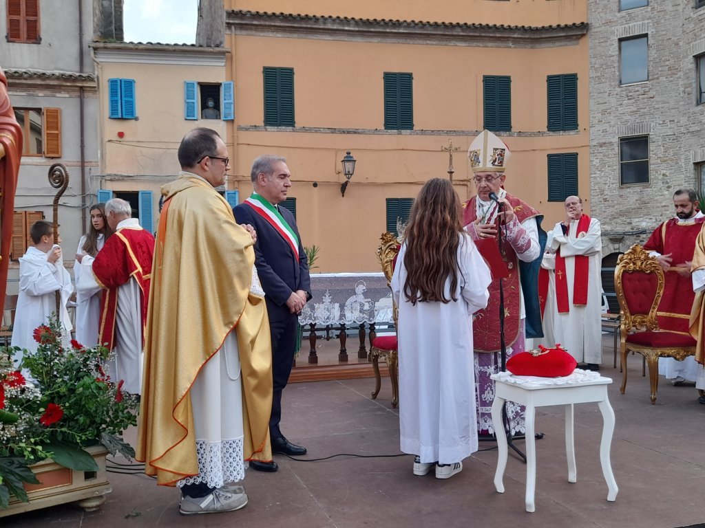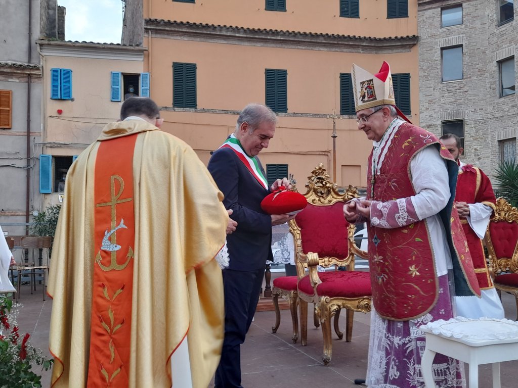 A seguire il vescovo Bresciani ha consegnato le chiavi della città al Sindaco Spazzafumo il quale, a sua volta, le ha affidate idealmente al santo patrono. Terminata la celebrazione, tutte le autorità ed i fedeli si sono recati in processione verso la piazza dell’orologio per fare, come di consueto, la tradizionale benedizione della città.