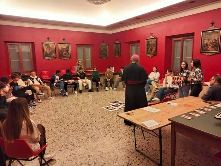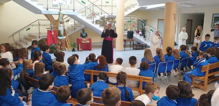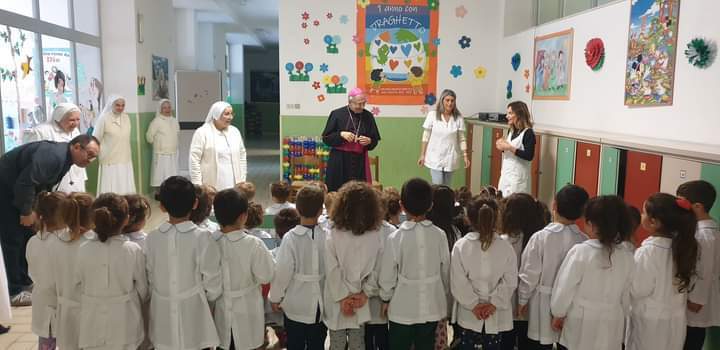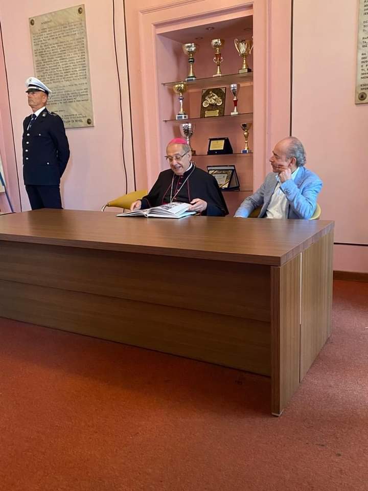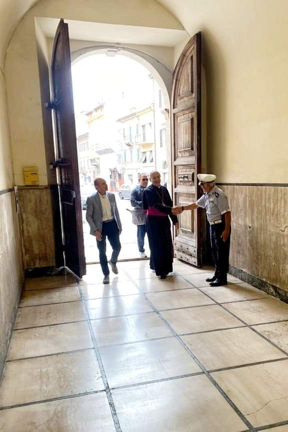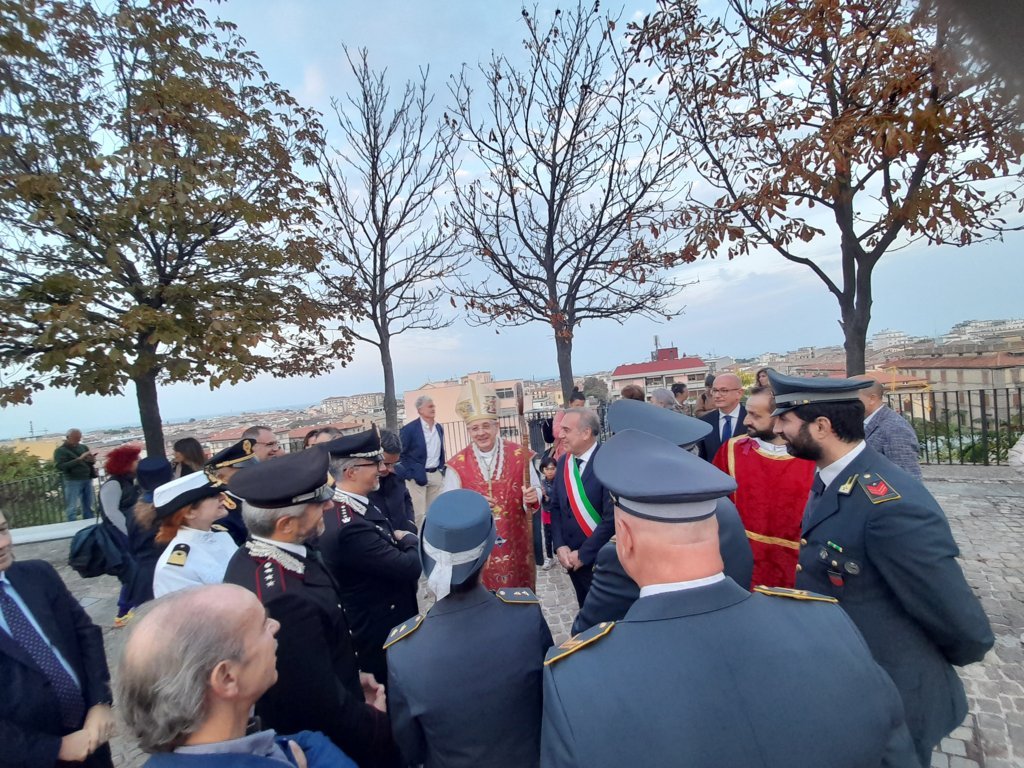 Dopo i riti di comunione, ha preso la parola il parroco don Guido Coccia: “Ringrazio di cuore tutte le autorità presenti per essere intervenute: la vostra presenza non è scontata. Poi, Eccellenza, voglio rivelarle con sincerità i miei pensieri alla vigilia della sua visita pastorale nella nostra parrocchia: quando ho saputo il periodo in cui sarebbe stato con noi, non l’avevo presa bene; poi, quando ho avuto la certezza che la data sarebbe stata in concomitanza con la festa patronale, molte titubanze si sono fatte sentire, soprattutto per via della pandemia. Devo dire, invece, che in questi giorni, accompagnandola in giro per la città, dal Sindaco alla Polizia, fino alle Scuole, ho sentito che è il momento di riprendere noi il cammino verso la città: non è più il tempo di attendere, bensì di andare. Lo dico a titolo personale, ma spero che il mio pensiero sia condiviso anche dagli altri sacerdoti della vicaria. Ci impegneremo a recuperare il senso di comunione e a riprendere le relazioni che sono venute a mancare in questi anni. Non so se ce la faremo, ma posso assicurarle che l’entusiasmo e l’impegno di questi giorni mi hanno dato lo stimolo per essere più forte e coraggioso. Dopo due anni di silenzio e di pandemia, in cui abbiamo vissuto solo i festeggiamenti religiosi, tutti vogliamo tornare a vivere e a far vivere questa città”