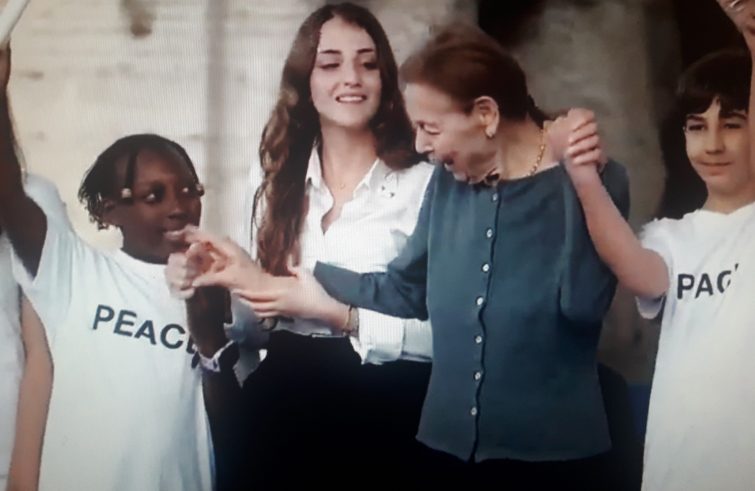 Su un grande schermo, sono state poi riproposte le immagini di guerre e sofferenze vissute dai popoli in ogni punto della terra accompagnate da un lungo minuto di silenzio e da un abbraccio di pace.