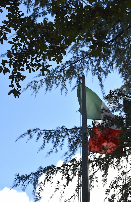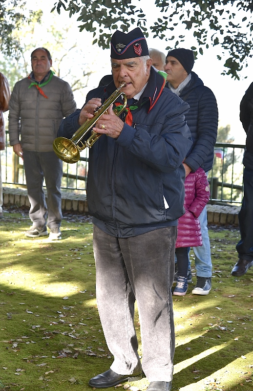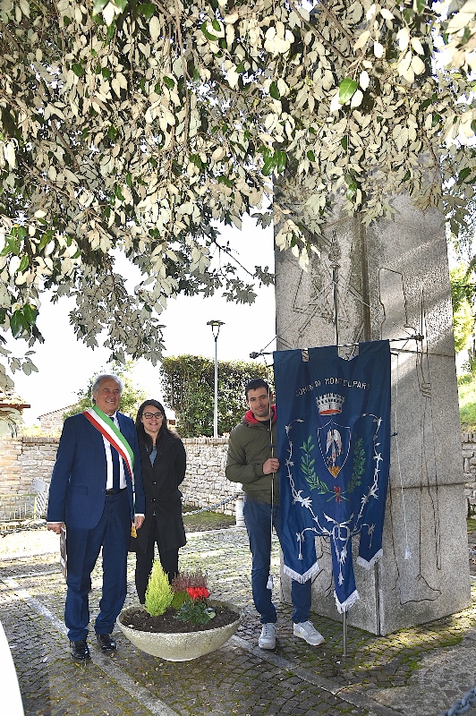 Qui la corona, benedetta da Padre Giovanni Mazzoni, è stata deposta con la cerimonia dell’alzabandiera sottolineata dal suono della tromba di Sandro Chiurchiù, musicista montelparese già facente parte della banda dei Carabinieri! Egli indossava infatti, quale pensionato, il Basco ed il collare dell’arma! E’ stato quello il momento di più grande attenzione e commozione!