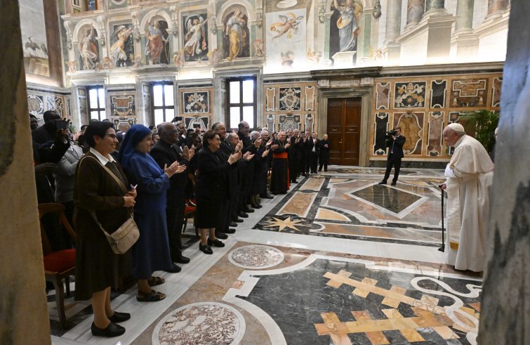 “Non abbiate paura, coltivate sempre di più lo stile di Dio – la vicinanza, la compassione e la tenerezza -, continuate ad aiutare tanti consacrati e tante consacrate ad essere una specie di Vangelo dispiegato nei secoli”. È l’invito con cui il Papa ha concluso l’udienza concessa alla Comunità dell’Istituto di Teologia della Vita Consacrata “Claretianum”, in occasione del 50° di fondazione. “Non stancatevi di andare alle frontiere, anche alle frontiere del pensiero”, ha proseguito Francesco: “di aprire strade, di accompagnare, radicati nel Signore per essere audaci nella missione. Già San Giovanni Paolo II metteva in guardia dal pericolo che comporta per vita consacrata la diminuzione della considerazione per lo studio. Trascurare la teologia, la riflessione, lo studio, le scienze impoverisce l’apostolato e favorisce la superficialità e la leggerezza nella missione”. “Non dimenticate, né nella vostra vita né nel vostro lavoro all’università, coloro che vivono le altre povertà”, la raccomandazione finale: “Possiate far sì che la vita vinca sulla morte e la dignità sull’ingiustizia. Per incontrare veramente Cristo, bisogna toccare il suo corpo nel corpo ferito dei poveri – non guardarli soltanto, toccarli – a conferma della comunione sacramentale ricevuta nell’Eucaristia. Quanti fondatori, fondatrici e persone consacrate hanno vissuto e vivono così!”.
