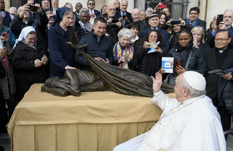 Ieri mattina, poco prima della consueta catechesi dell’udienza generale del mercoledì, Papa Francesco ha benedetto una nuova scultura in piazza San Pietro che mette in evidenza la condizione dei senzatetto. Si intitola “Sheltering” ed è una scultura in bronzo a grandezza naturale che mostra la figura di un senzatetto riparato da una coperta tirata da una colomba in volo. L’immagine viene svelata pochi giorni prima della 6ª Giornata mondiale dei poveri, che si celebrerà domenica prossima, 13 novembre. La scultura – si legge in una nota – è opera dell’artista canadese Timothy Schmalz, che ha già una consolidata esperienza nel campo delle statue religiose in tutto il mondo. La sua opera “Angeli senza saperlo” (Angels Unawares), dedicata ai migranti e ai rifugiati, è stata installata in piazza San Pietro nel 2019, anch’essa benedetta dal Santo Padre. “Sheltering” è stata concepita per accendere i riflettori sul problema dei senzatetto nel mondo e incoraggiare soluzioni pratiche, in linea con la missione della “Campagna 13 Case”, un’iniziativa della Famiglia Vincenziana mondiale, tramite la FamVin Homeless Alliance (Fha), che ha l’obiettivo di porre fine al fenomeno dei senzatetto e di cambiare la vita di 1,2 miliardi di persone che in tutto il mondo vivono senza un posto che possa essere definito casa. Commentando l’inaugurazione di “Sheltering”, Mark McGreevy, coordinatore della Fha e presidente del DepaulInternationalGroup, ha dichiarato: “Questa statua fa una dichiarazione cruciale sul tema dei senzatetto: ci costringe a essere consapevoli delle persone senza dimora che ci circondano. Prima di risolvere il problema dei senzatetto, dobbiamo comprenderlo. Dobbiamo fermarci ad ascoltare le storie dei senzatetto e coinvolgerli nelle soluzioni che producono cambiamenti a lungo termine. Nessuno dovrebbe essere senza casa”. Da parte sua, Tomaž Mavrič, superiore generale della Congregazione della Missione di San Vincenzo de’ Paoli e delle Figlie della Carità di San Vincenzo de’ Paoli, ha spiegato: “L’ispirazione di Gesù e di San Vincenzo de’ Paoli ci porta a sognare in grande, ma con profonda umiltà. Il sogno è che a un certo punto della storia tutta l’umanità possa avere un alloggio decente, un posto decente da chiamare casa”.