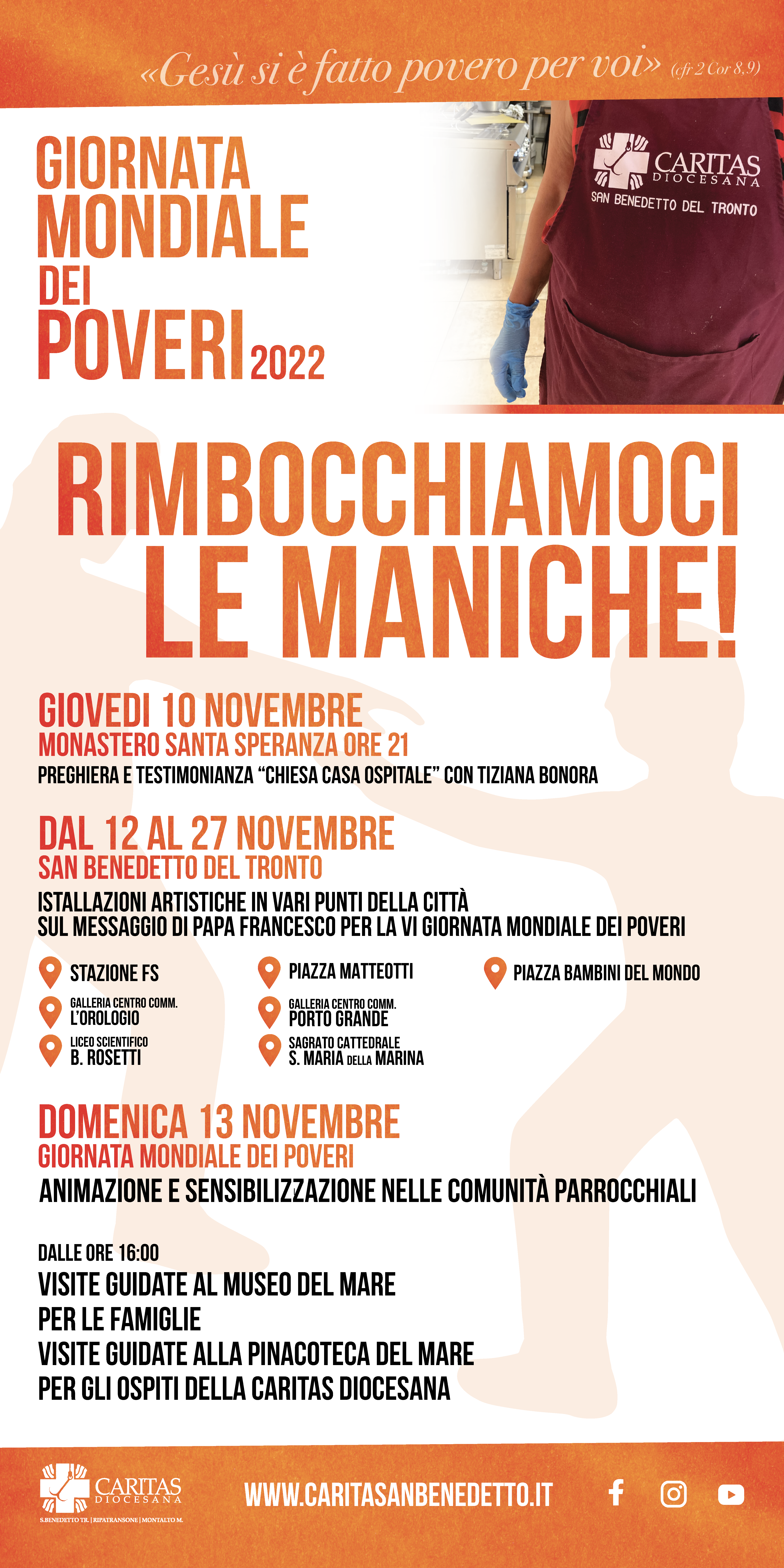DIOCESI – La Caritas Diocesana San Benedetto del Tronto-Ripatransone-Montalto, accogliendo l’invito del Papa, intende promuovere la sesta Giornata Mondiale dei Poveri in programma domenica 13 novembre 2022 che ha come titolo “Gesù Cristo si è fatto povero per voi”.
