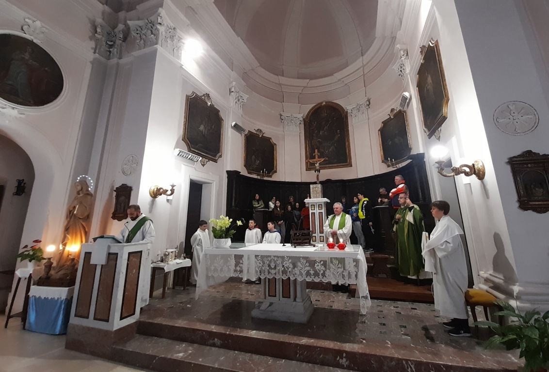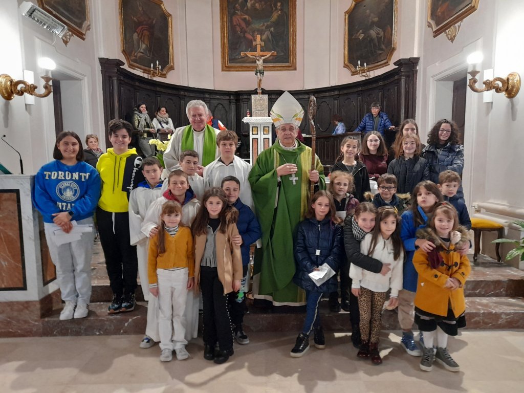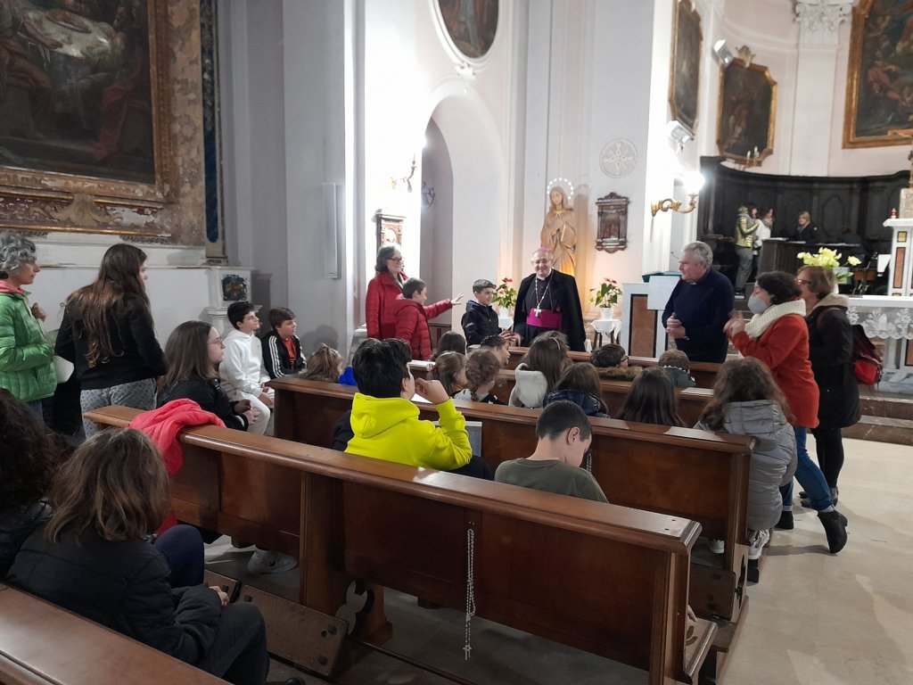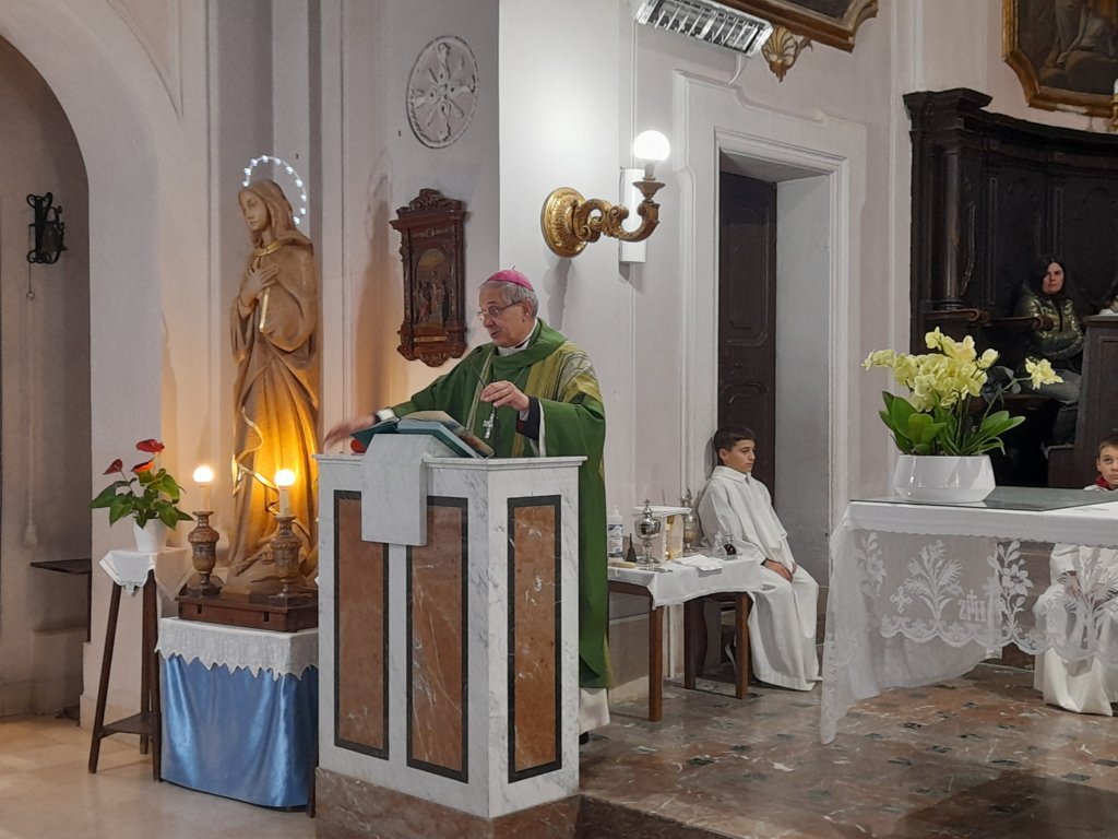 Queste le parole del vescovo durante l’omelia della Messa delle ore 18:00 di sabato 12 novembre che ha visto la partecipazione di molti bambini e ragazzi del catechismo: “Con questa celebrazione si conclude la visita pastorale nella vostra comunità. Abbiamo fatto molte cose insieme in questi giorni: il vescovo, infatti, viene per incontrare le persone e per ascoltare insieme la Parola del Signore, una Parola che guida e sorregge la nostra vita. Voi, ragazzi, avete letto in anticipo le letture di questa giornata, le avete meditate e avete capito che cosa vogliono dire. Siete stati bravissimi anche a scrivere le introduzioni alle varie letture e a lavorarci sopra. Ora anche noi adulti cerchiamo di comprendere meglio il significato della Parola odierna per vedere cosa dice alla nostra vita: la Parola del Signore, infatti, non ci racconta storie e non delude mai. Stasera in particolare questa Parola sembra dura perché ci dice che la vita non sempre è facile. Gesù, infatti, non si presenta come un imbonitore delle folle, bensì parla anche delle difficoltà che la vita a volte ci riserva. Dunque la domanda che ci facciamo oggi noi è: ‘Come affrontiamo queste difficoltà?’ Certamente non con la superbia: nella prima lettura, infatti, ci viene detto che i superbi sono come paglia. Anche noi a volte siamo presi dalla tentazione di dire: ‘Io non ho bisogno di nessuno’ o ‘Io faccio da solo’. Noi cristiani non possiamo dire questo, perché Gesù ci dice che dobbiamo camminare insieme. Non possiamo certamente affrontare la nostra vita neanche stando con le mani in mano, come ci ricorda la seconda lettura in cui Gesù ci dice che la vita va affrontata con impegno: mamma e papà lavorano per far sì che voi, ragazzi, possiate mangiare, studiare, vestire. Anche voi dovete prendere esempio da mamma e papà e non dire: ‘Ora non studio, tanto poi ci sono mamma e papà che mi danno una mano’. Questo impegno non riguarda solo la nostra vita personale, bensì anche la vita della comunità. Noi cristiani, infatti, non possiamo stare a guardare e dire che tocca sempre agli altri, al prete, al catechista. L’impegno di cui ci parla la Parola di oggi significa anche dare ordine alla nostra vita, organizzando il tempo per studiare, mangiare, divertirci, stare insieme con gli altri. Certamente non dobbiamo affrontare la nostra vita con ansietà, senza dormirci sopra! Ma non possiamo neanche dire che non tocca mai a noi, perché questo atteggiamento può far vivere una vita sbagliata o addirittura distruggere una comunità. La Parola di oggi ci dice anche che non si può affrontare la vita pensando solo al passato e a quanto di bello è stato fatto, restandone prigionieri: questa ricchezza che la nostra Chiesa possiede va conservata e questa fede va tenuta viva nelle nostre famiglie, oltre che nelle nostre chiese. Infine non dobbiamo certamente affrontare la vita andando dietro alle promesse fatue, a chi ci dice falsità. Non lasciamo ingannare.”