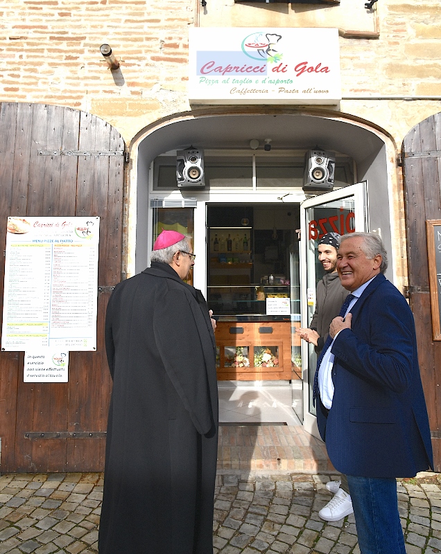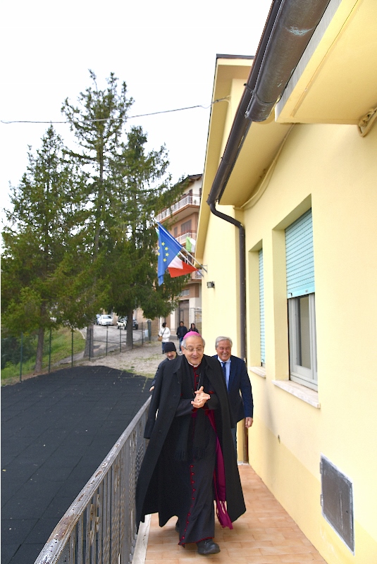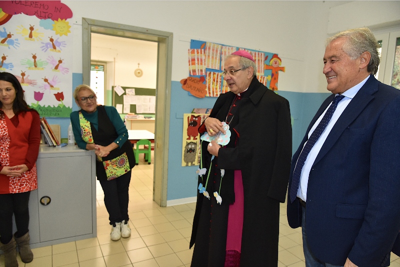 Il Vescovo ha voluto dare, quindi, un saluto e una benedizione a tutte le attività commerciali (l’Ufficio Postale, il Bar Ferracuti, la macelleria Desiderio Screpanti, la Farmacia Giovanni Sciarroni, il negozio di Alimentari di Milena Ferracuti, il parrucchiere Claudio Funari, la pizzeria Capricci di Gola) che si trovano lungo la via principale del paese (Via Roma) da lui percorsa a piedi. Si è quindi diretto verso la Scuola dell’Infanzia dove curiosissimi e meravigliati bambini lo attendevano, con le loro docenti, in un silenzio quasi religioso!