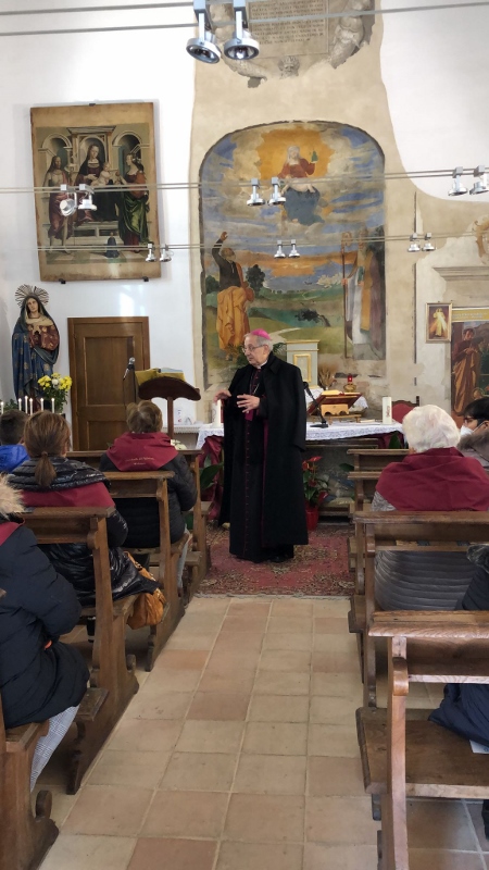 Si è recato poi nella Chiesa dei Santi Pietro e Silvestro dove lo attendevano le “Consorelle”, i “Cantori” e molti altri fedeli. A loro, dopo un breve saluto, impartiva la benedizione. Un canto a Maria concludeva l’incontro!