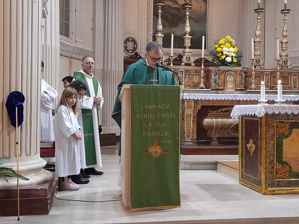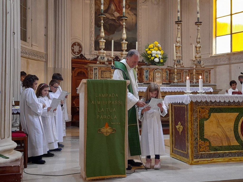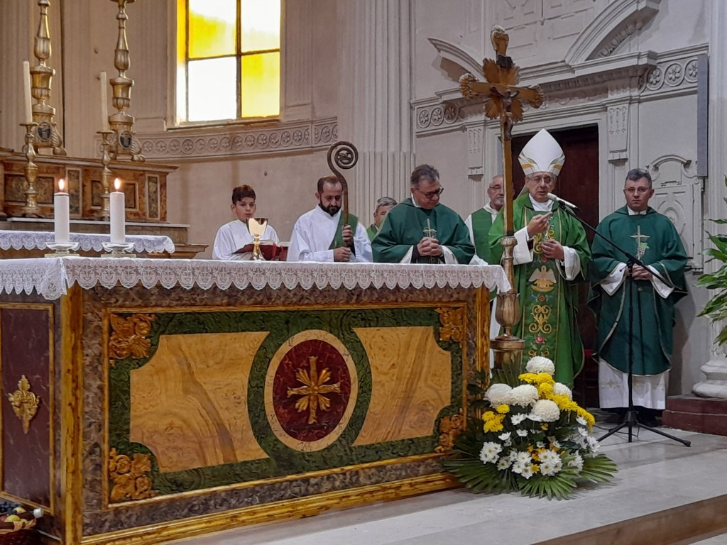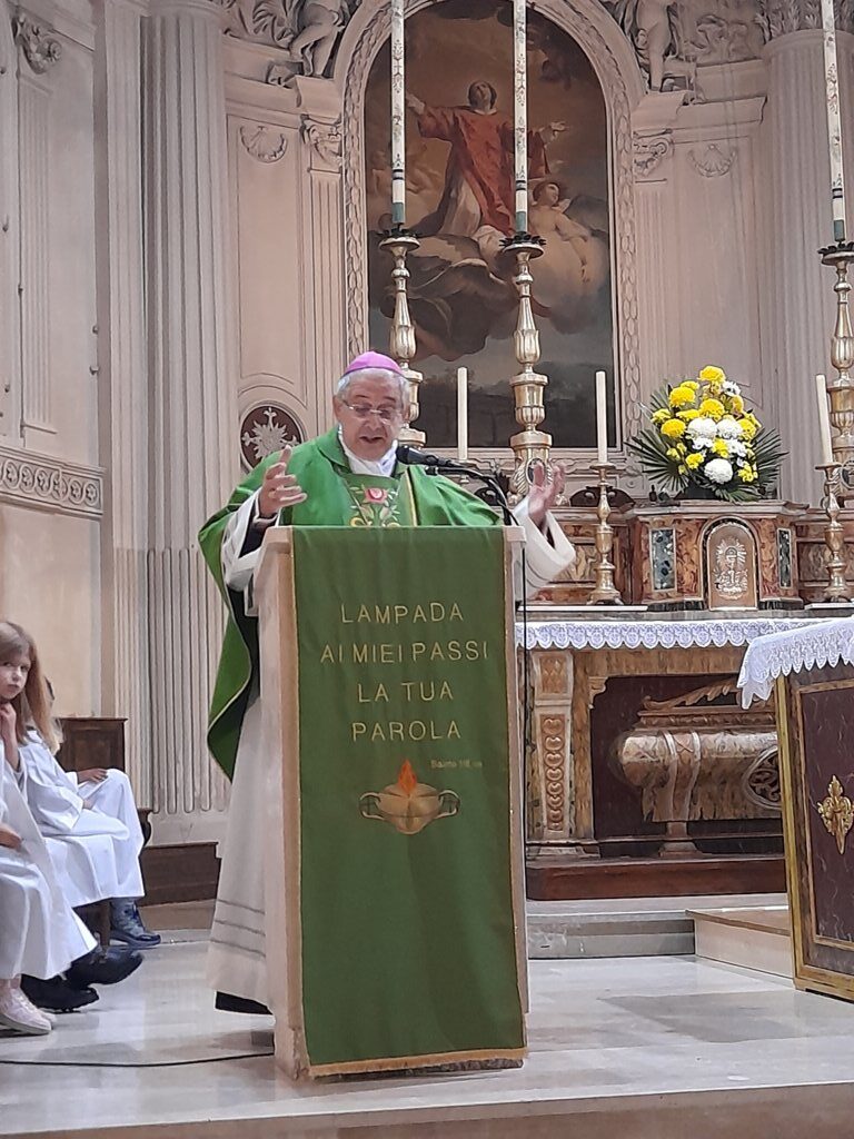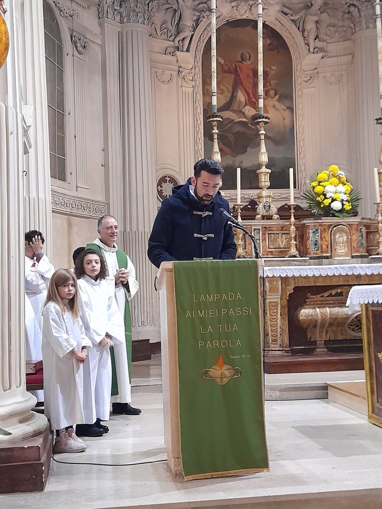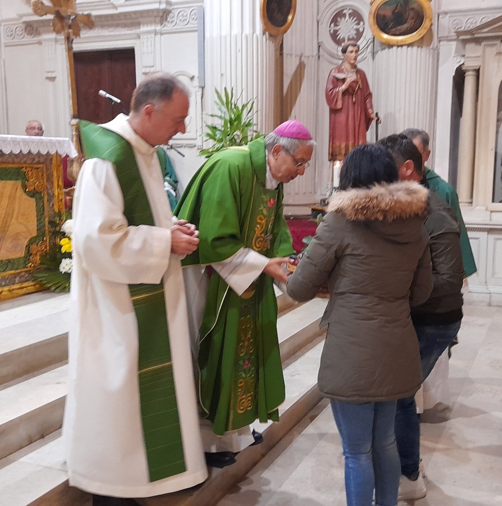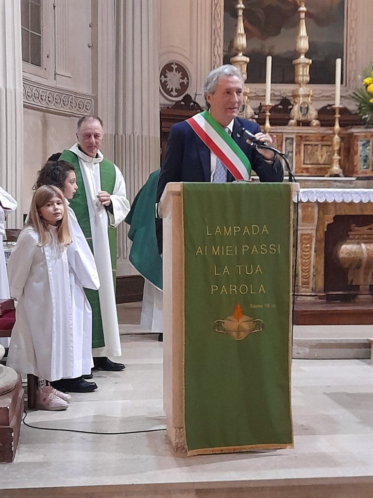 All’inizio della celebrazione, il parroco padre Gabriele ha dichiarato: “Eccellenza, in questi pochi giorni ha avuto modo di incontrare la nostra modesta comunità che, però, anche se piccola, ha un cuore grande e vuole rispondere con gioia e responsabilità alla chiamata del Signore, mettendo al centro della propria vita ciò che davvero conta, ovvero il Vangelo. Tutta la comunità la ringrazia per la sua visita, perché la sua presenza ci sostiene e ci incoraggia lungo questo cammino. In particolare vogliamo manifestarle la nostra gratitudine attraverso le parole del nostro sindaco e di uno dei membri del Consiglio Pastorale.”