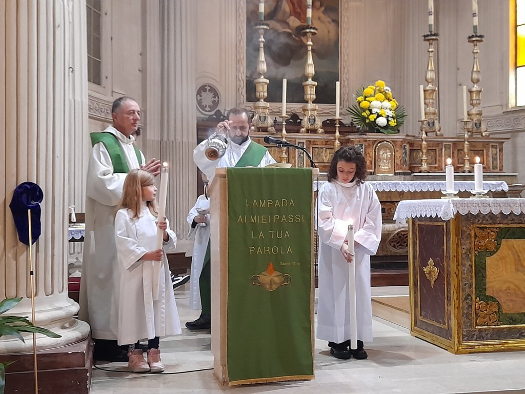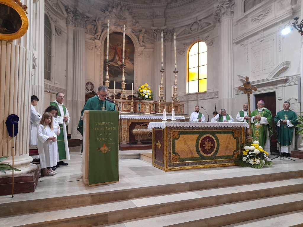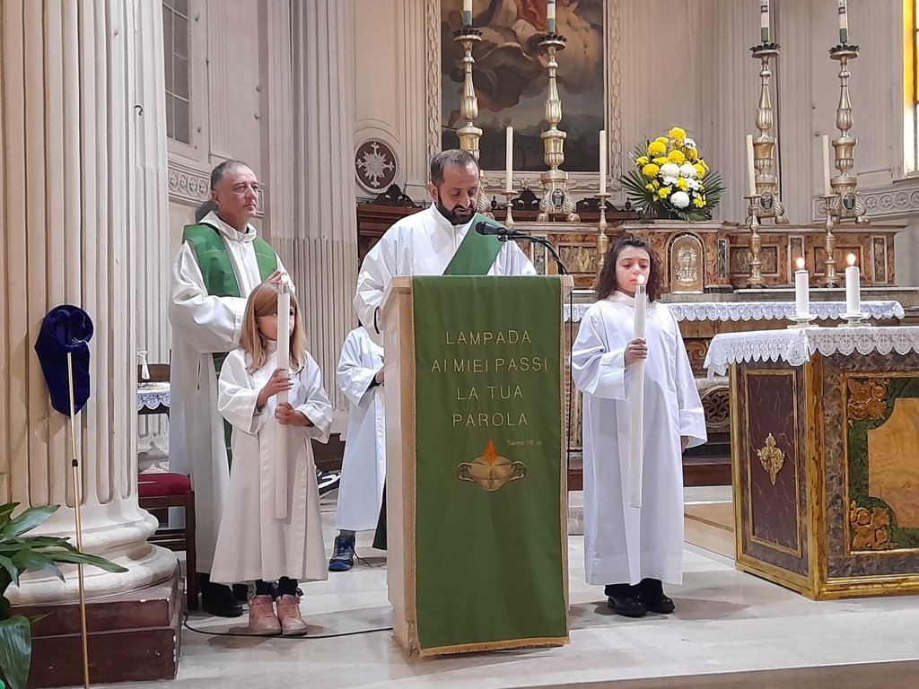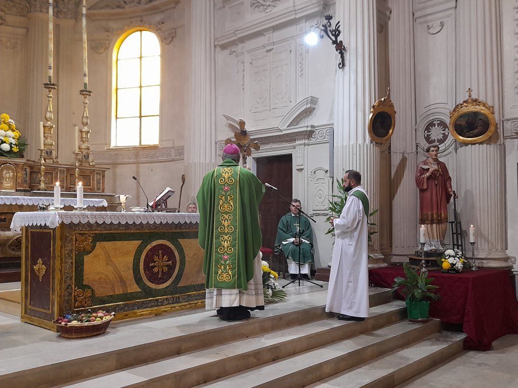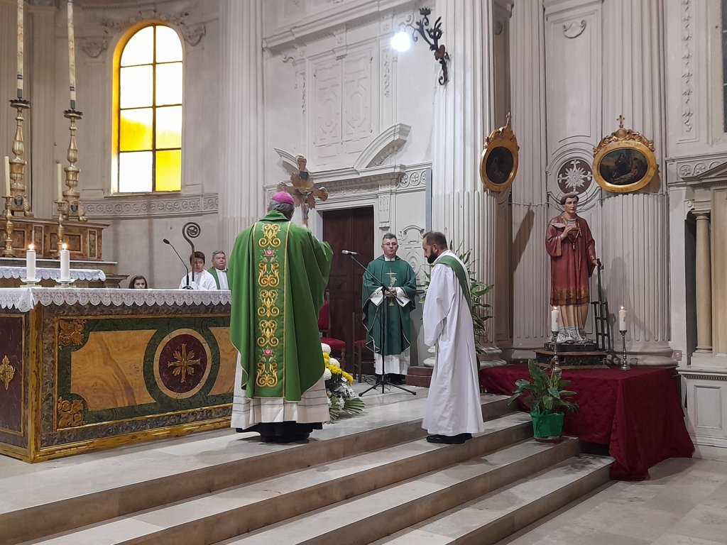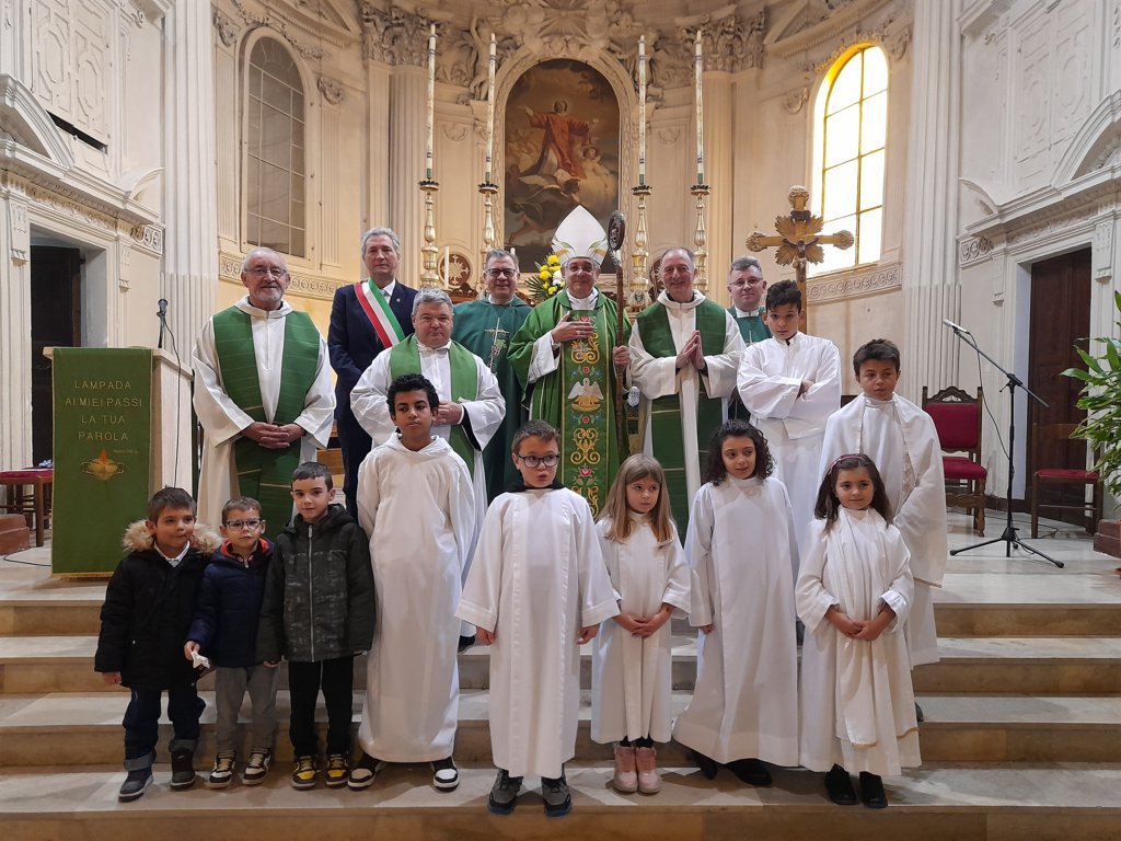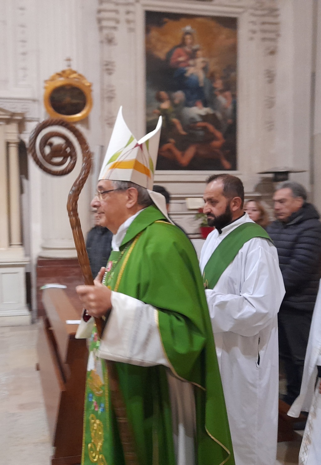 All’inizio della celebrazione, il parroco padre Gabriele ha dichiarato: “Eccellenza, in questi pochi giorni ha avuto modo di incontrare la nostra modesta comunità che, però, anche se piccola, ha un cuore grande e vuole rispondere con gioia e responsabilità alla chiamata del Signore, mettendo al centro della propria vita ciò che davvero conta, ovvero il Vangelo. Tutta la comunità la ringrazia per la sua visita, perché la sua presenza ci sostiene e ci incoraggia lungo questo cammino. In particolare vogliamo manifestarle la nostra gratitudine attraverso le parole del nostro sindaco e di uno dei membri del Consiglio Pastorale.”
