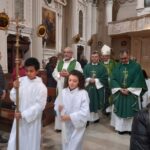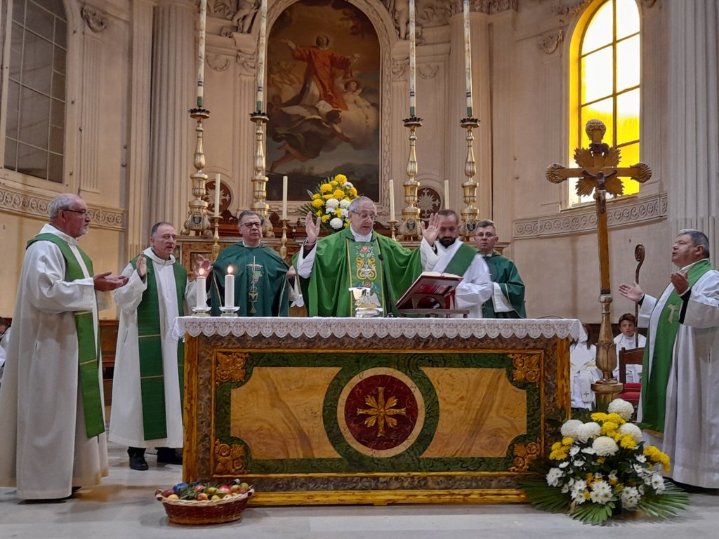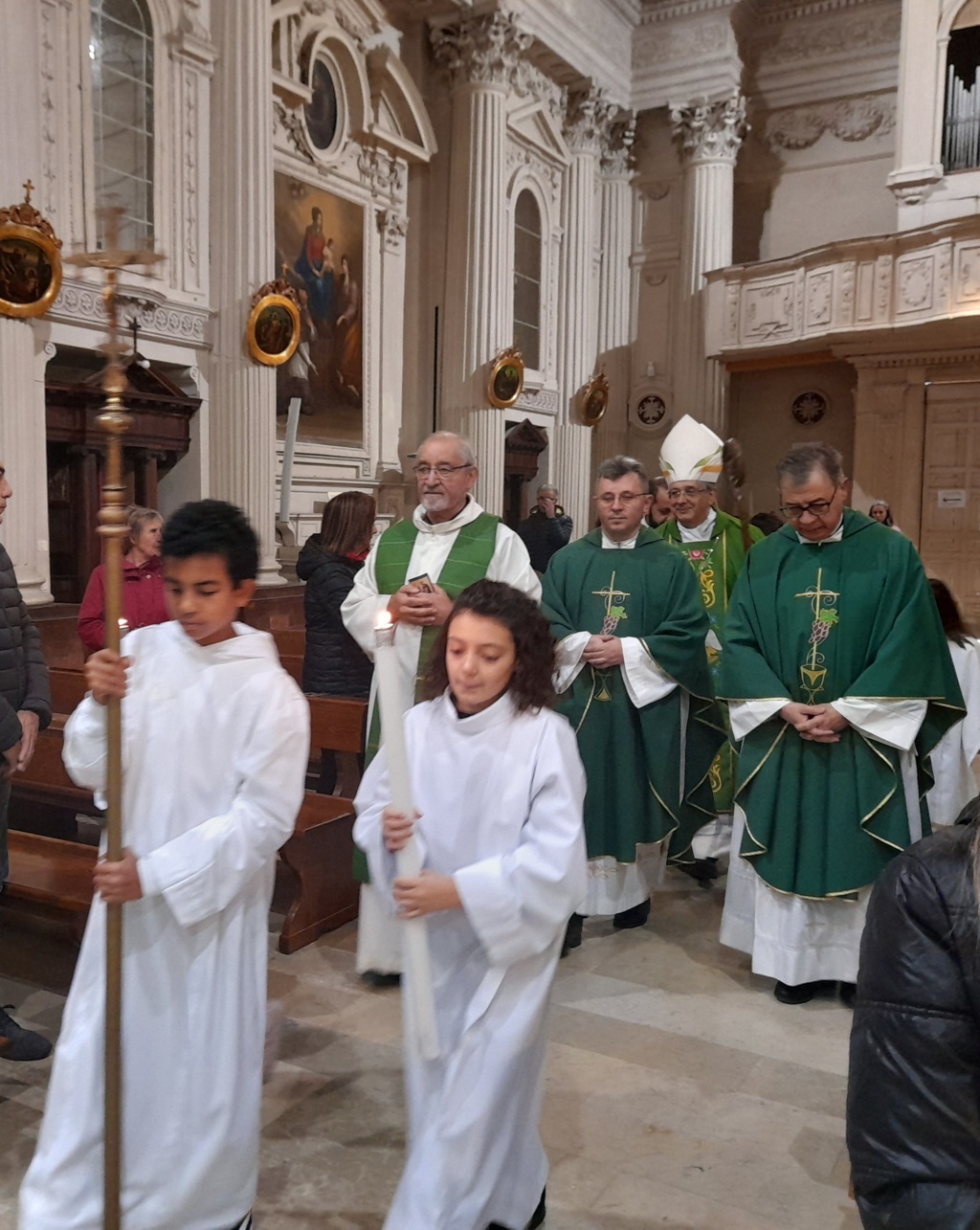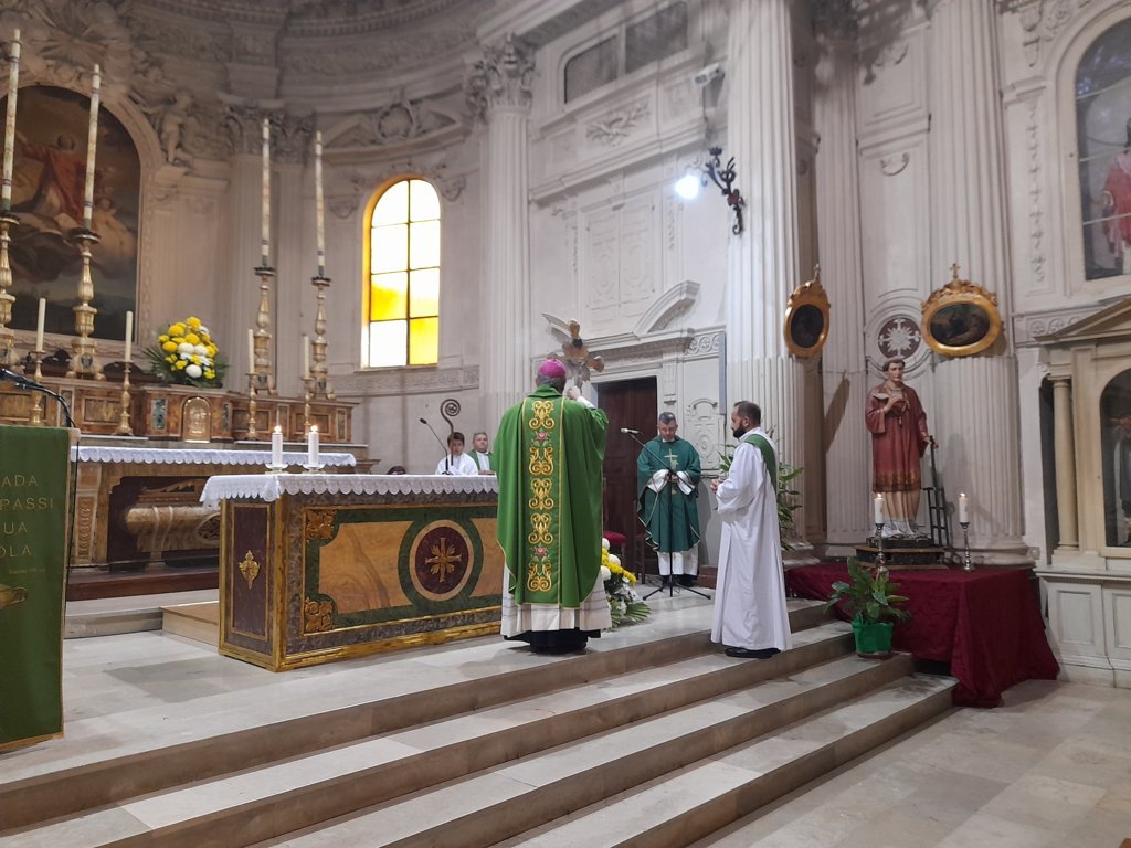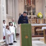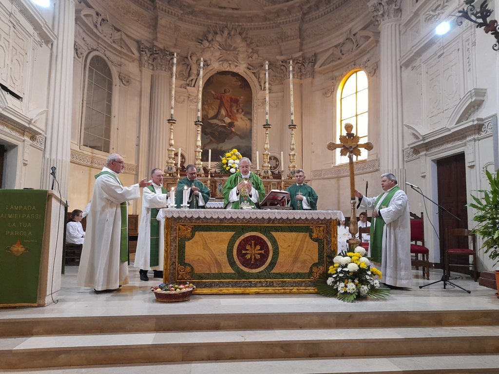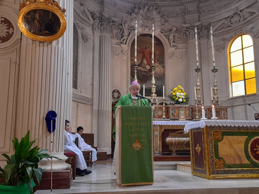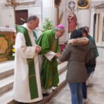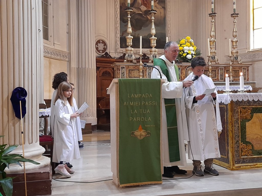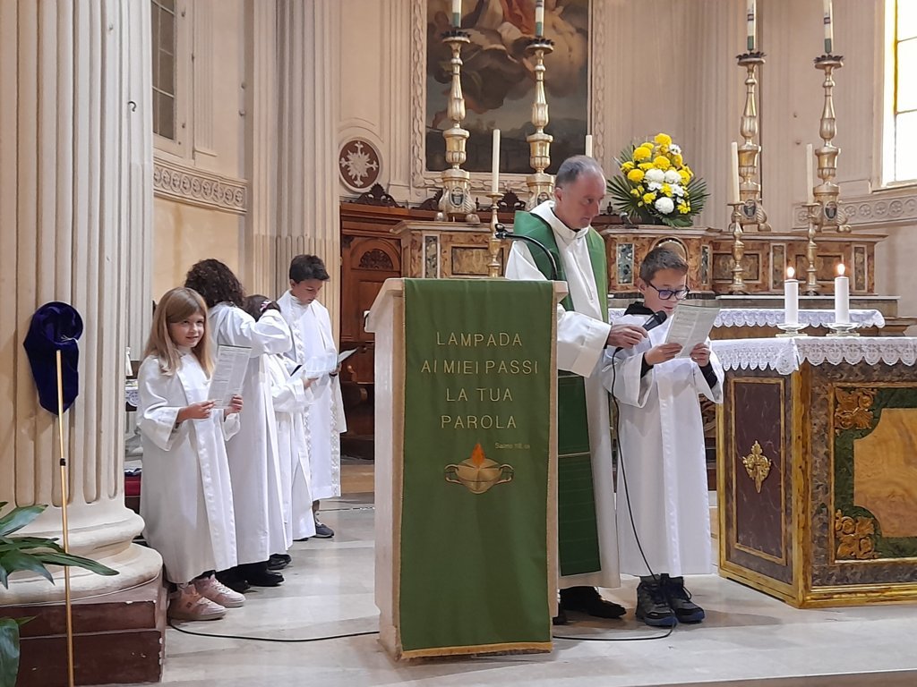 All’inizio della celebrazione, il parroco padre Gabriele ha dichiarato: “Eccellenza, in questi pochi giorni ha avuto modo di incontrare la nostra modesta comunità che, però, anche se piccola, ha un cuore grande e vuole rispondere con gioia e responsabilità alla chiamata del Signore, mettendo al centro della propria vita ciò che davvero conta, ovvero il Vangelo. Tutta la comunità la ringrazia per la sua visita, perché la sua presenza ci sostiene e ci incoraggia lungo questo cammino. In particolare vogliamo manifestarle la nostra gratitudine attraverso le parole del nostro sindaco e di uno dei membri del Consiglio Pastorale.”