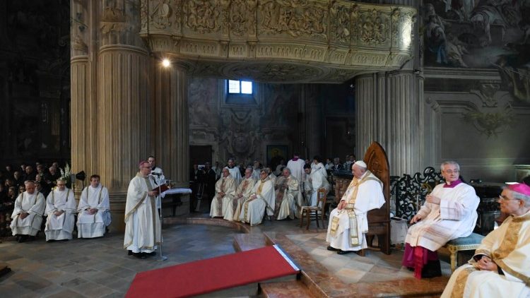 Nel grande tempio gremito di più di 4 mila persone, il Papa fa il suo ingresso dopo il saluto alla città in papamobile, accompagnato dall’inno della Giornata Mondiale della Gioventù di Roma 2000 “Jesus Christ, you are my life”, e dai giovani dell’equipe di pastorale giovanile che portano la croce realizzata per la celebrazione. Poi istituisce accolito il seminarista astigiano Stefano Accornero, invitando tutti “a pregare per lui, perché vada avanti nella sua vocazione e sia fedele” all’inizio dell’omelia. Ma chiede anche di pregare “per questa Chiesa di Asti, perché il Signore invii vocazioni sacerdotali, perché come voi vedete la maggioranza sono vecchi, come me. ci vogliono preti giovani, come alcuni di qua che sono bravissimi. Preghiamo il Signore perché benedica questa terra”.