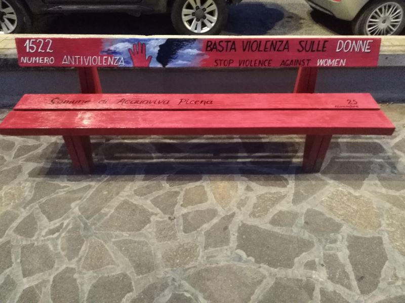 ACQUAVIVA PICENA – Il 25 novembre, con delle cerimonie più o meno grandi, è stata celebrata la Giornata Internazionale contro la violenza sulle donne, anche l’Amm.ne Com.le di Acquaviva Picena ha in qualche modo contribuito, non è rimasta indifferente e presentando il lavoro della prof.ssa Loredana Agresti, una panchina di colore rosso sul quale oltre un significativo dipinto è stato impresso il numero antiviolenza, si è unita a tutto il mondo per fermare questa grande piaga. Benché si stia riducendo il numero di violenze il tasso è ancora molto alto; il fenomeno non si presenta sempre in modo inaspettato, ma è spesso la conclusione ad azioni e atteggiamenti ai quali si da poco peso e vengono sottovalutati. L’Assemblea Generale delle Nazioni Unite nel 1998 ha stabilito che il 25 novembre venisse istituita la Giornata Internazionale contro la violenza sulle donne, affinché potesse essere uno strumento di sensibilizzazione. Un ringraziamento speciale da parte dell’Amm.ne Com.le va alla prof.ssa Loredana Agresti, a Johanna Cerisoli e agli Assessori Rossi e la consigliere Di Girolamo.