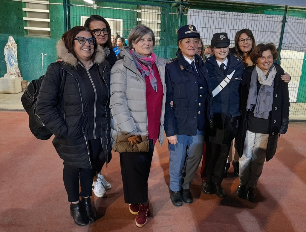 Presenti numerosi rappresentanti delle istituzioni civili e militari, a partire dall’Ispettore di Polizia Loriana Di Giacinti del Commissariato di San Benedetto del Tronto e del Carabiniere Chiara Dolce della locale Stazione dei Carabinieri. Ad assistere alla partita, da una posizione privilegiata, c’erano anche le componenti della Commissione Pari Opportunità del Comune di San Benedetto del Tronto: la Consigliera Provinciale con delega alle Pari Opportunità Aurora Bottiglieri, l’Assessora della città rivierasca avente delega alla Cultura e alle Pari Opportunità Lina Lazzari, l’Assessora con delega allo Sport e al Turismo Cinzia Campanelli, le Consigliere Comunali Barbara De Ascaniis, Sabrina Merli ed Elena Piunti.