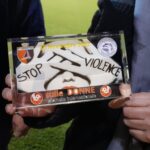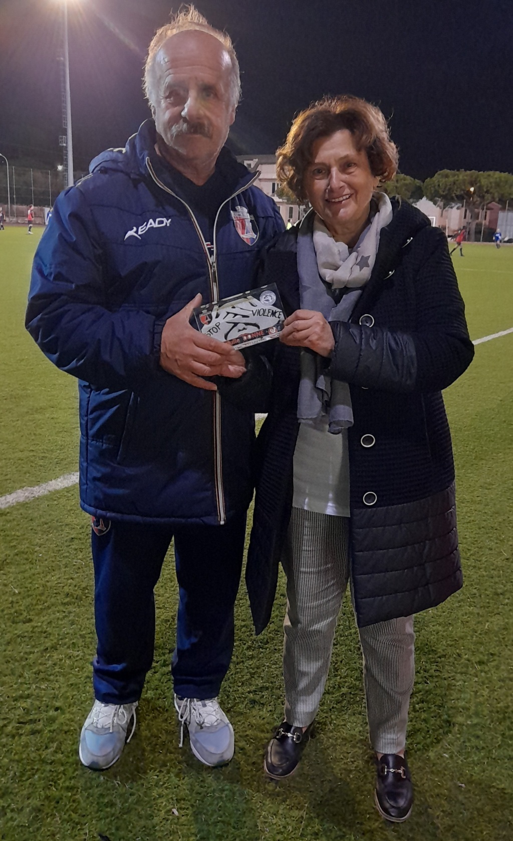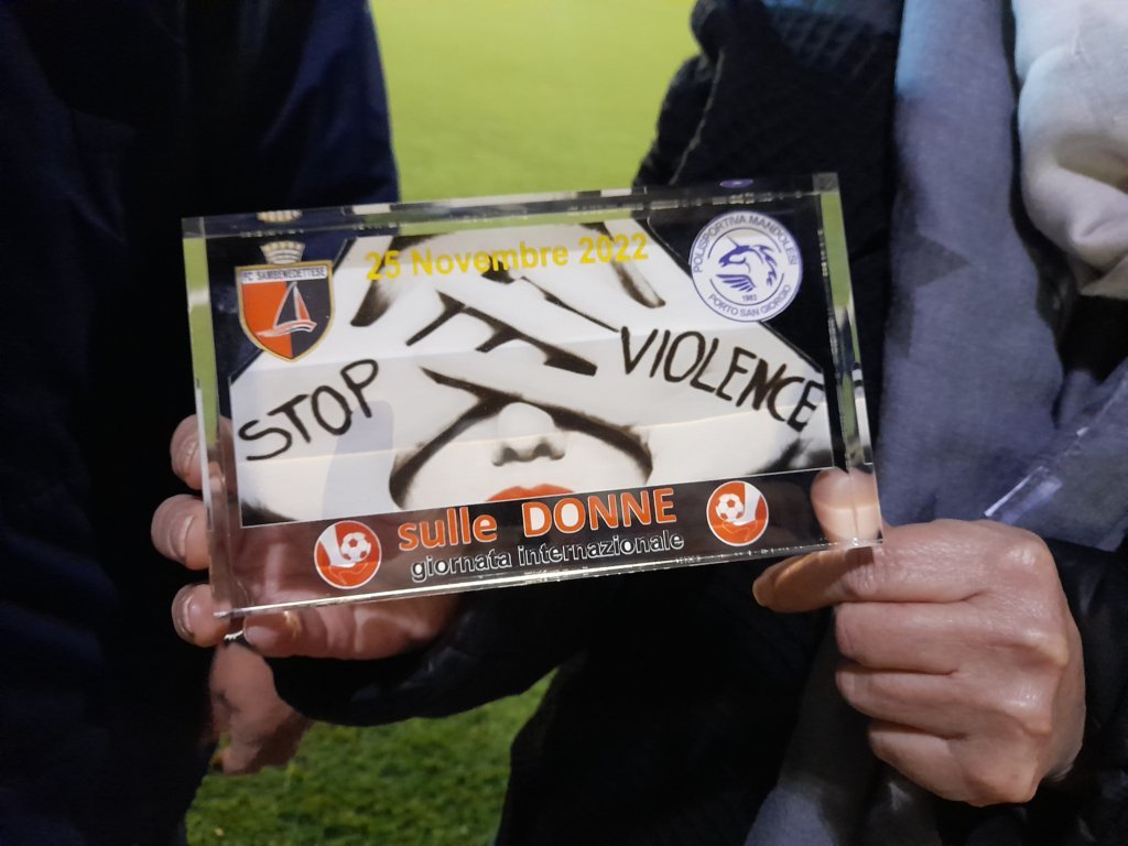 La partita, finita 4 – 0 per la Samb, si è conclusa con un gesto molto significativo: il manager Giuseppe Merlini ha consegnato all’Assessora Lina Lazzari una targa celebrativa in memoria della Giornata vissuta insieme. La partita è stata seguita da molti genitori i quali, fuori dal campo, hanno voluto, come hanno fatto le loro figlie in campo, dire no alla violenza sulle donne.