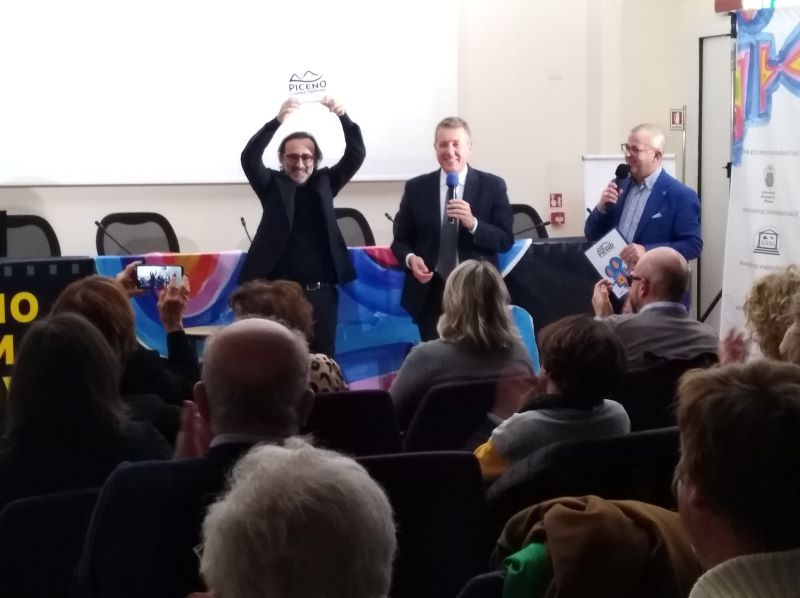 ACQUAVIVA PICENA – È stato assegnato sabato 26 novembre presso l’Auditorium “San Giacomo della Marca” della Banca del Piceno ad Acquaviva Picena, il premio “Città di Acquaviva Picena” al corto “Robot e Margherite” della regista Viola Folador. Per un’intera settimana Acquaviva Picena, tra l’orgoglio del sindaco Sante Infriccioli e dell’intera Amm.ne Com.le, ha ospitato il Piceno Cinema Festival. Ogni sera sono stati proiettati dei corti, sia quelli in gara sia quelli fuori concorso; ogni sera sono stati presenti degli ospiti che con la loro preparazione ed esperienza hanno approfondito la cultura cinematografica; una condivisione apprezzata e gradita al pubblico presente. Nella giornata di sabato in mattinata l’attore Giovanni Esposito ha incontrato i ragazzi della Scuola Secondaria di primo grado di Acquaviva Picena. Esposito, attore di grande professionalità e umanità, ha instaurato subito con i ragazzi un rapporto di fiducia e cortesia. In un bel clima caratterizzato da simpatia, serenità, silenzio e sensibilità, i ragazzi hanno conversato con l’attore esponendo i loro dubbi, le loro domande, le loro confidenze e i loro sogni, hanno anche chiesto chiarimenti sui “trucchi” nel mondo del cinema e sugli effetti speciali che spesso vengono utilizzati. I ragazzi con grande attenzione hanno ascoltato i consigli di Esposito che ha sottolineato che lo studio è molto importante, anche nel cinema e nel teatro. Ha raccomandato ai ragazzi di impegnarsi sempre, di studiare sempre, di non cercare “scorciatoie” e di non scoraggiarsi nei momenti più buii della vita, ma di avere speranza nel futuro. I ragazzi ne sono rimasti positivamente colpiti e ne hanno apprezzato la disponibilità, la preparazione e la simpatia, lo stesso effetto che Giovanni Esposito ha avuto sui più adulti durante la serata di sabato, serata dedicata alla premiazione del corto vincitore. Ospite della serata di sabato anche il prof. Pasquale De Cristofaro, persona preparata e disponibile. La serata è stata presentata da Luca Sestili. Il sindaco diAcquaviva Picena si è detto molto orgoglioso di avere ospitato un importante concorso come questo organizzato da Piceno Cinema Festival, ha ringraziato gli organizzatori tutti iniziando da Marco Trionfante e ha promesso di collaborare per altre iniziative. Presenti alla cerimonia di premiazione anche l’Assessore alla cultura Marianna Spaccasassi, la capogruppo di maggioranza Patrizia Di Girolamo e tutta l’Amm.ne Com.le.