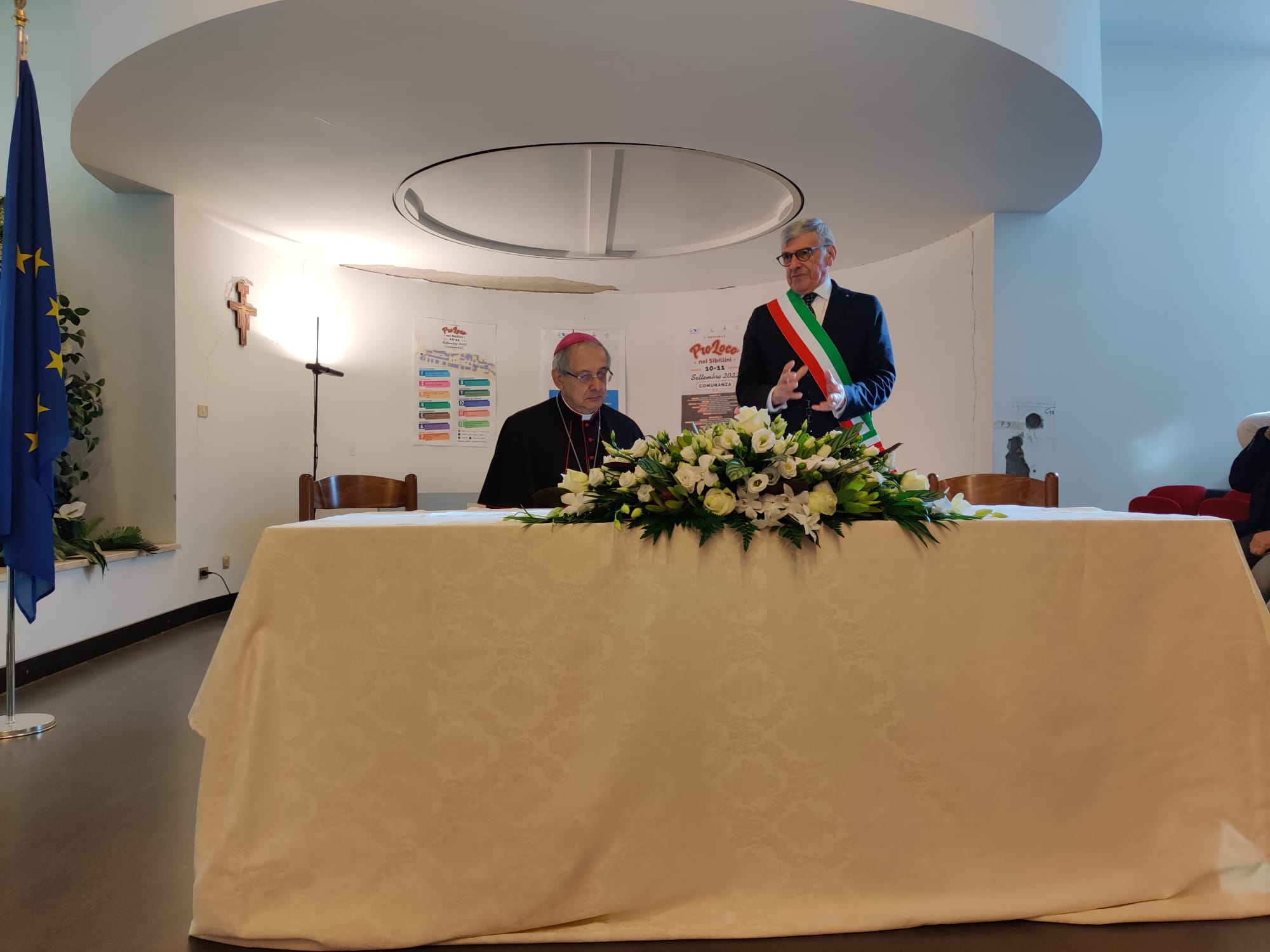 A seguire, anche padre Gabriele Lupi, vicario della vicaria Beata Assunta Pallotta, ha preso la parola: “Mi è stato chiesto di intervenire a conclusione di questa visita pastorale nella nostra vicaria. Il mio ringraziamento è da parte di questa comunità pastorale che, con questa Eucaristia, conclude l’incontro con il vescovo Carlo. Come ci è stato ricordato durante l’omelia, l’incontro con il Signore è la cosa più importante. Vorremmo che questo incontro sia una conferma per la nostra fede, la conferma di un cammino, la conferma delle cose belle che ci ha ricordato don Luca, esempi della nostra vicaria, della nostra zona. Vorremmo che questo incontro portasse i suoi frutti. Certamente non vedremo subito i frutti, però questo camminare insieme, questo essere pronti all’ascolto, questo essere operosi nella carità non mancherà di portare frutto. Grazie alle sue fatiche, Eccellenza: sappiamo che ci sono state. Non è sempre facile mantenere questo ritmo a quest’altitudine. La ringraziamo per aver speso tempo ed energie per noi. Grazie di cuore, vescovo Carlo.”