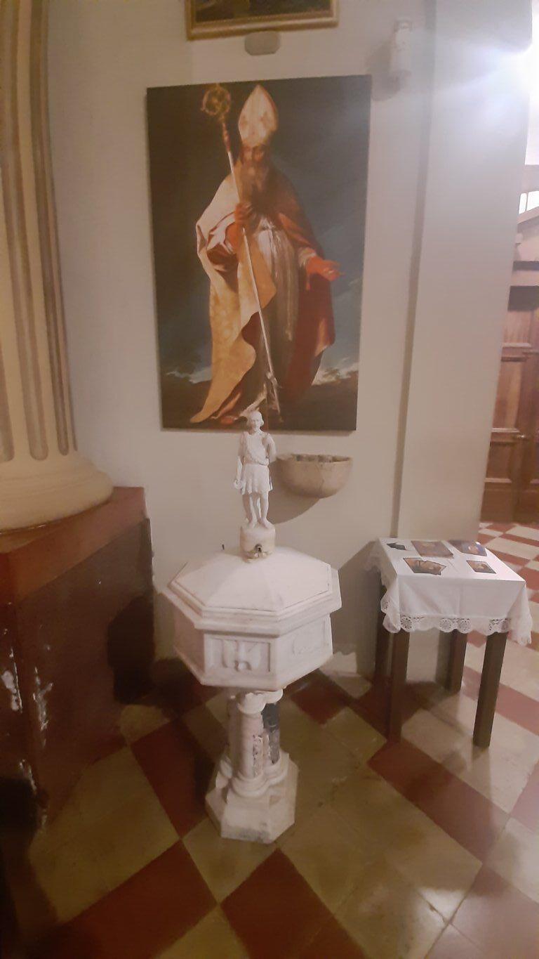 Al termine dei riti di Comunione, il parroco don Luca Rammella ha preso la parola per fare alcuni ringraziamenti: “È arrivato il momento del congedo che, per me, coincide con il momento dei ringraziamenti. Innanzitutto il mio primo grazie va a Gesù: se, infatti, la comunità cristiana di queste tre parrocchie di Force, Comunanza e Montamonaco è viva, il merito è solo del Signore che opera di continuo per il bene di questa Unità Pastorale. Noi possiamo fare tanto come sacerdoti, come Consiglio Pastorale, come catechisti o altri collaboratori, ma è Lui che opera veramente. Appena lei è arrivato, caro vescovo Carlo, mi è venuto spontaneo indicarle tutto quello che non va – credo che sia stato così per ogni sacerdote, è inevitabile – tuttavia devo riconoscere che in questa bella comunità ci sono anche tante cose buone. La prima è la gente: ci sono davvero molte persone di buona volontà che fanno tanto per la nostra Chiesa. In ciascuno dei paesi di questa Unità Pastorale noi sacerdoti possiamo percepire la bellezza di avere tre comunità in cui ancora si può celebrare un’Eucarestia avendo di fronte dei fedeli che davvero la vivono in profondità e con il cuore. Il secondo grazie va alle Missionarie della Fanciullezza che mostrano sempre tanta generosità, soprattutto in questi giorni che hanno ospitato il vescovo Carlo. In terzo luogo voglio ringraziare il Coro con il quale stiamo facendo un bel lavoro per renderlo ancora più bello. Un altro grazie va ai catechisti che sono il mio orgoglio: mettono, infatti, tantissima buona volontà nel far comprendere ai bambini e ai giovani quanto sia grande Gesù e quanto sia meraviglioso il Vangelo. Voglio poi ringraziare padre Renato e don Lukasz che fanno davvero tanto per questa Unità Pastorale e che sempre mi dimostrano la bontà del loro cuore. Un altro grazie va ai diaconi Walter e Natalino: al primo perché, con lui durante la liturgia, ci si sente sempre più sicuri; al secondo perché è un punto di riferimento per la nostra Unità Pastorale sul quale possiamo sempre contare. Un altro grande grazie, che dico con una punta di commozione, lo rivolgo a tutti coloro che ci aiutano con la Liturgia: sono persone carissime al mio cuore e, quando qualcuno dice una parola di troppo a questa persone, oltre a ferire queste persone, ferisce anche me. Infine vorrei concludere i miei ringraziamenti citando una battuta di un celebre film di Totò i cui protagonisti sono due futuri consuoceri che cercano di accordarsi su come dividere le spese di nozze. Ad un certo punto, Totò dice: ‘Io pago i bignè e tu tutto il resto’. La divisione non sembra molto equa agli occhi del consuocero, ma Totò replica: ‘I bignè sono manufatti, quindi hanno un valore maggiore’. Ho citato questa famosa battuta, Eccellenza, per dirle che anche noi, come Totò, riteniamo che i manufatti abbiano un valore maggiore, perché sono frutto di una cura, una dedizione e una passione speciali. Per questo motivo, per ringraziarla, Eccellenza, abbiamo pensato di donarle un’opera realizzata da un anziano artigiano che ha superato da poco un momento difficile in quanto a salute e che ha voluto, a nome della comunità, omaggiarla con questo pezzo unico. Glielo consegno con commozione e con un cuore colmo di gratitudine per tutto quello che ha fatto per noi.”