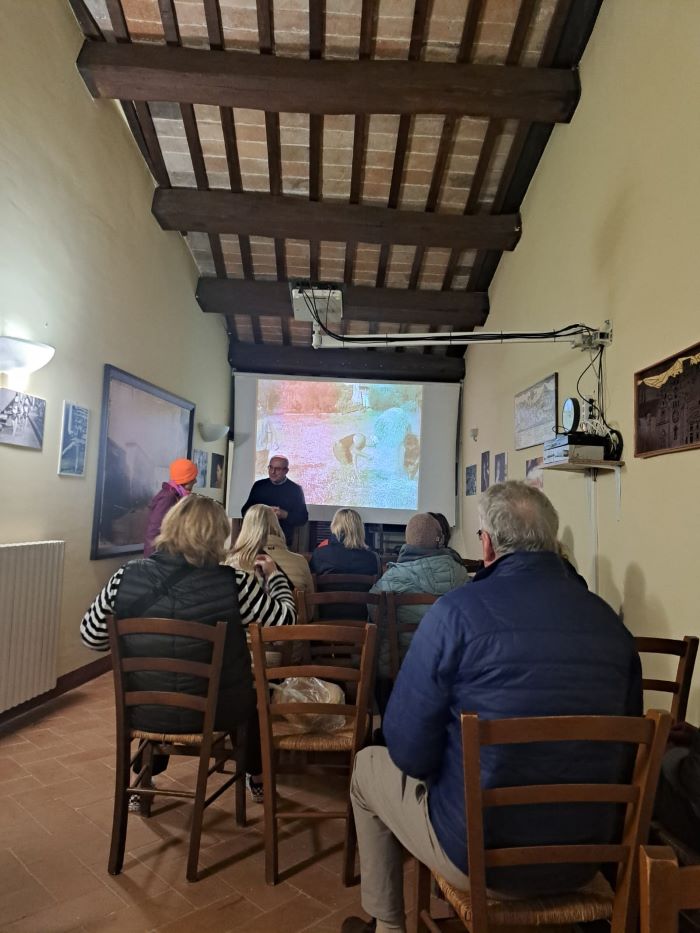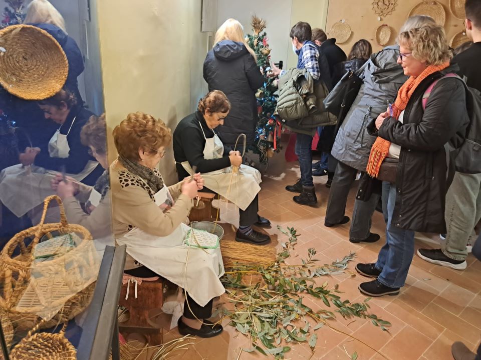 ACQUAVIVA PICENA – Sessantotto turisti americani sono stati accompagnati da Matteo Troiani dell’agenzia di viaggi Be In Italy tour operator di Ascoli Piceno al Museo della pajarola di Acquaviva Picena; i turisti, provenienti sia dallo Stato del New Jersey che da altre parti degli Stati Uniti, sono stati accompagnati in giro per il Piceno alla scoperta di luoghi meno celebri, ma comunque ricchi di storia, cultura e tradizioni, una tappa di questo tour è stata proprio Acquaviva Picena. I sessantotto turisti sono stati divisi in due gruppi e si sono avvicendati nella visita alla Fortezza Medievale e al Museo della pajarola. All’interno del Museo Riccardo Ioannone ha spiegato i vari processi della lavorazione della pajarola, dalla semina dei tipi di grano che occorrono, alla raccolta e alla preparazione, due donne dell’Associazione hanno mostrato poi, sul momento, come si realizza una pajarola; i turisti hanno fatto tante domande e sono rimasti piacevolmente colpiti dalla maestria dell’intreccio dei fili di paglia, nonché dai vari lavori esposti all’interno del Museo. Il gruppo di americani ha guardato con interesse il documentario realizzato dall’Associazione Laboratorio Terraviva, presidente cav. Filippo Gaetani, alcuni anni fa, nel quale sono illustrate molto bene le varie fasi della realizzazione della pajarola partendo appunto dalla semina dei differenti tipi di grano. Grande apprezzamento lo hanno avuto verso il presepe interamente realizzato in paglia e verso gli oggettini natalizi da appendere all’albero. Ad ogni singolo turista l’Agenzia ha regalato un sottopentola realizzato con la paglia. La visita guidata ad Acquaviva è iniziata alle ore 9:30 e si è conclusa alle 12:00.