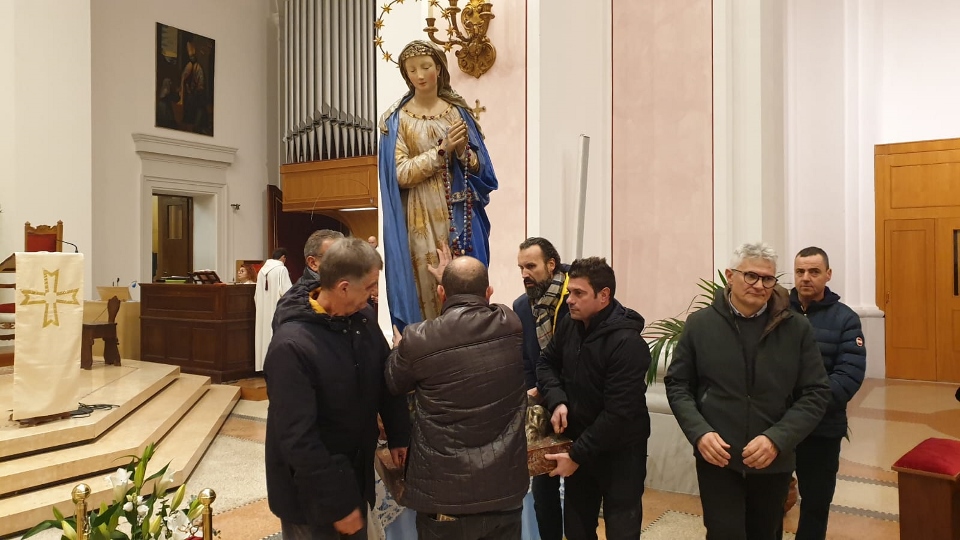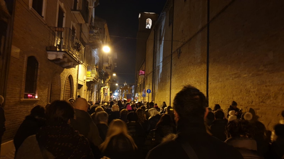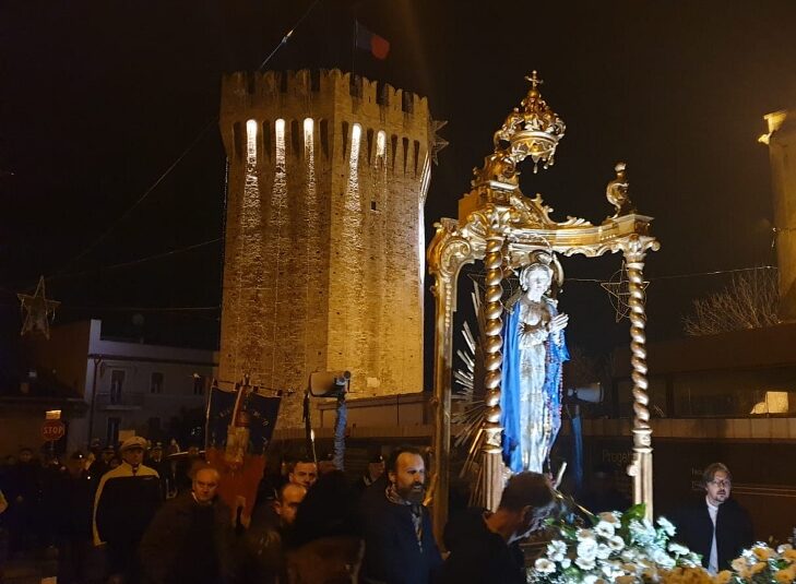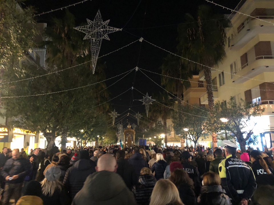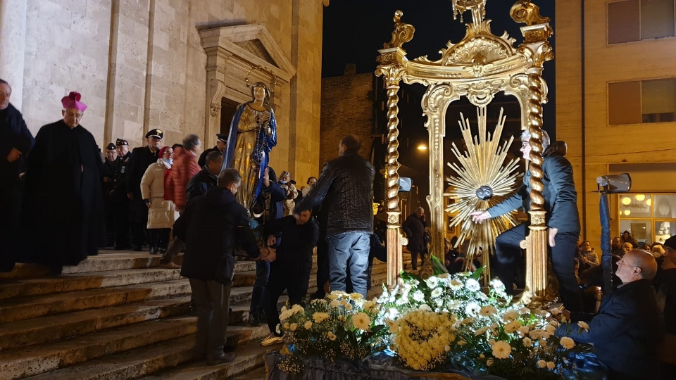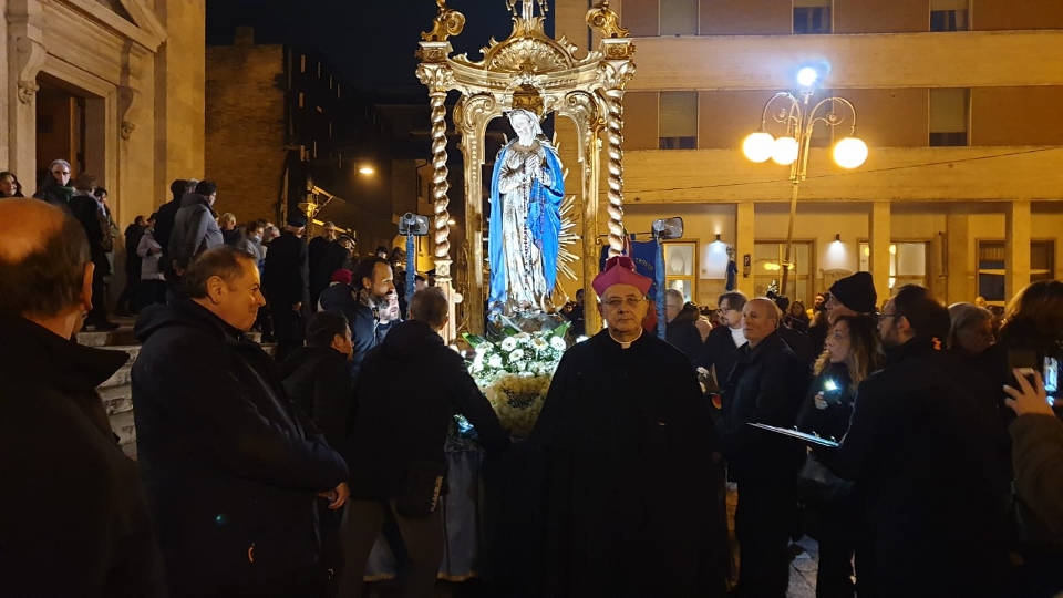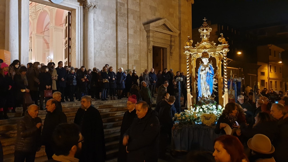 Alle ore 18.00 è partita dalla cattedrale la processione che, attraversando via Pizzi, via Gramsci, via Moretti, via Fileni e via Voltattorni è giunta alla chiesa di San Benedetto Martire al Paese Alto. Lungo il tragitto si sono alternati le preghiere e i brani musicali eseguiti dalla Banda Cittadina. Tanti i fedeli e di semplici curiosi che si sono fermati per rendere omaggio a Maria.