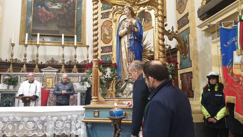 Nella sua omelia, il Vescovo Carlo ha affermato: “Per noi fedeli di san Benedetto l’odierna festa dell’Immacolata ha un duplice significato: quello della venerazione di Maria Immacolata che accomuna tutto il popolo cattolico, e quello del rinnovamento del voto fatto dalla cittadinanza nel lontano 1855 onde essere liberati dal colera che mieteva molte vittime tra la popolazione. Voto che è stato mantenuto con fedeltà, e molto lodevolmente, per tutto questo tempo.