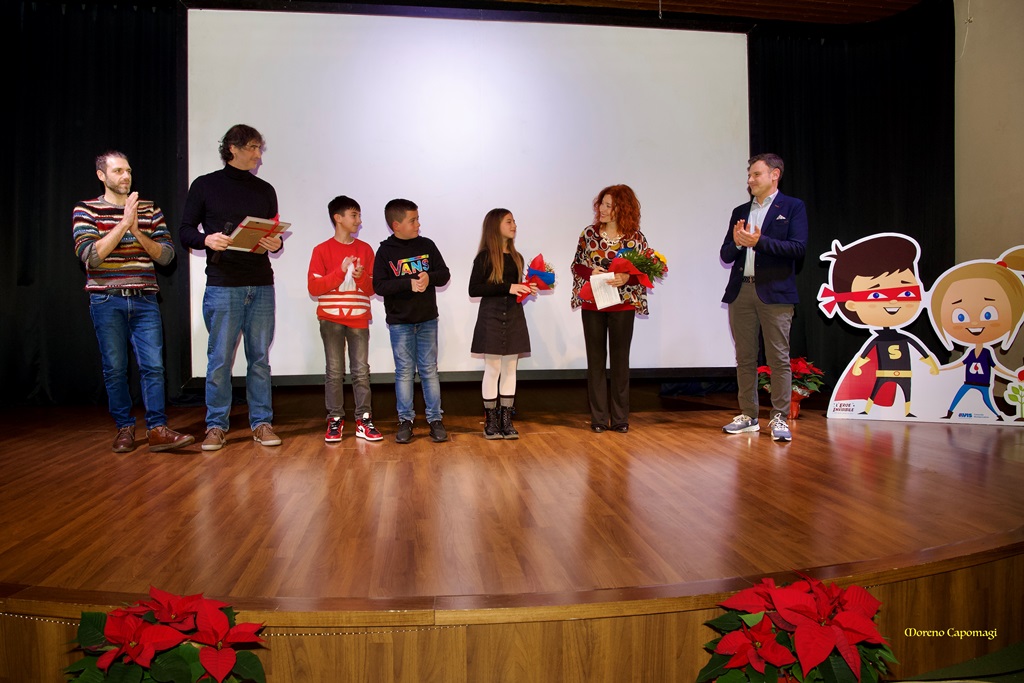 A prendere la parola, il Presidente dell’Avis Comunale di Monteprandone, Marcello Fratini, che oltre ad avere ringraziato tutte le istituzioni, le associazioni, e le aziende che hanno contribuito a vario titolo al progetto, ha spiegato il motivo per cui il Direttivo dell’Avis ha puntato sul cortometraggio come mezzo di promozione dei valori della solidarietà tra i giovani. “il Nostro obiettivo, ha dichiarato Fratini, è quello di creare emozioni e penso che il regista Ernesto Vagnoni, con questo film, raggiungerà ciò che ci eravamo prefissi inizialmente; ora abbiamo tutti gli strumenti per andare dai ragazzi e parlare loro di altruismo e di rispetto per l’altro”. A Fratini, fa eco il regista che sottolinea come sia piacevole e gratificante far recitare i bambini e come sia importante far passare i messaggi tramite loro, in una società in cui l’adulto perde sempre più di credibilità. Sul palco anche i piccoli protagonisti, Giulio Notarnicola (Andrea bambino) e Rachele Vittori (Silvia bambina), insieme a Paolo Fratini (uno degli amici) e la voce narrante, Andrea adulto interpretato magistralmente da Luca Evangelista che racconta quanto sia stato per lui importante girare questo film, come momento di crescita personale.