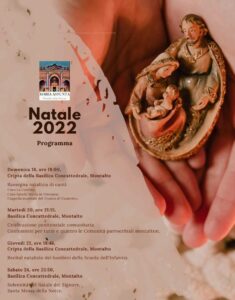“Abbiamo inaugurato ieri sera la settimana che precede il Natale – dichiara don Lorenzo – con la rassegna canora natalizia dal titolo ‘Capanna Sanda’ che si è tenuta alle ore 18:00 presso la Cripta della Concattedrale Santa Maria Assunta. Per l’occasione si sono esibiti in canti natalizi della tradizione popolare il Coro “La Cordata” e il Coro “Sancta Maria in Viminatu” di Montalto delle Marche e la Cappella Musicale del Duomo di Camerino. Si sta inoltre svolgendo, tutti i giorni, alle ore 18:00, la Santa Messa della Novena con l’arricchimento di preghiera dei Salmi nei vespri o nelle lodi che intercorrono in questi giorni feriali fino alla Vigilia del Santo Natale.”