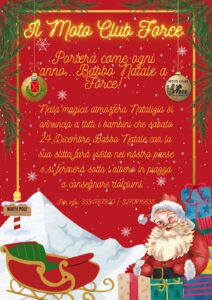 “Per quanto concerne l’appuntamento di Sabato 24 Dicembre – prosegue il presidente Bassetti – ci rendiamo disponibili a portare a casa i regali ai piccoli Forcesi su richiesta dei genitori. L’importante è che le segnalazioni vengano fatte entro il 23 Dicembre ai numeri presenti anche in locandina: 333 4787920 oppure 327 0716835. Sarà mia premura, visto che sono uno stretto collaboratore di Babbo Natale, fargli recapitare tutte le richieste, così da accontentare tutti i bambini che lo desiderano!”