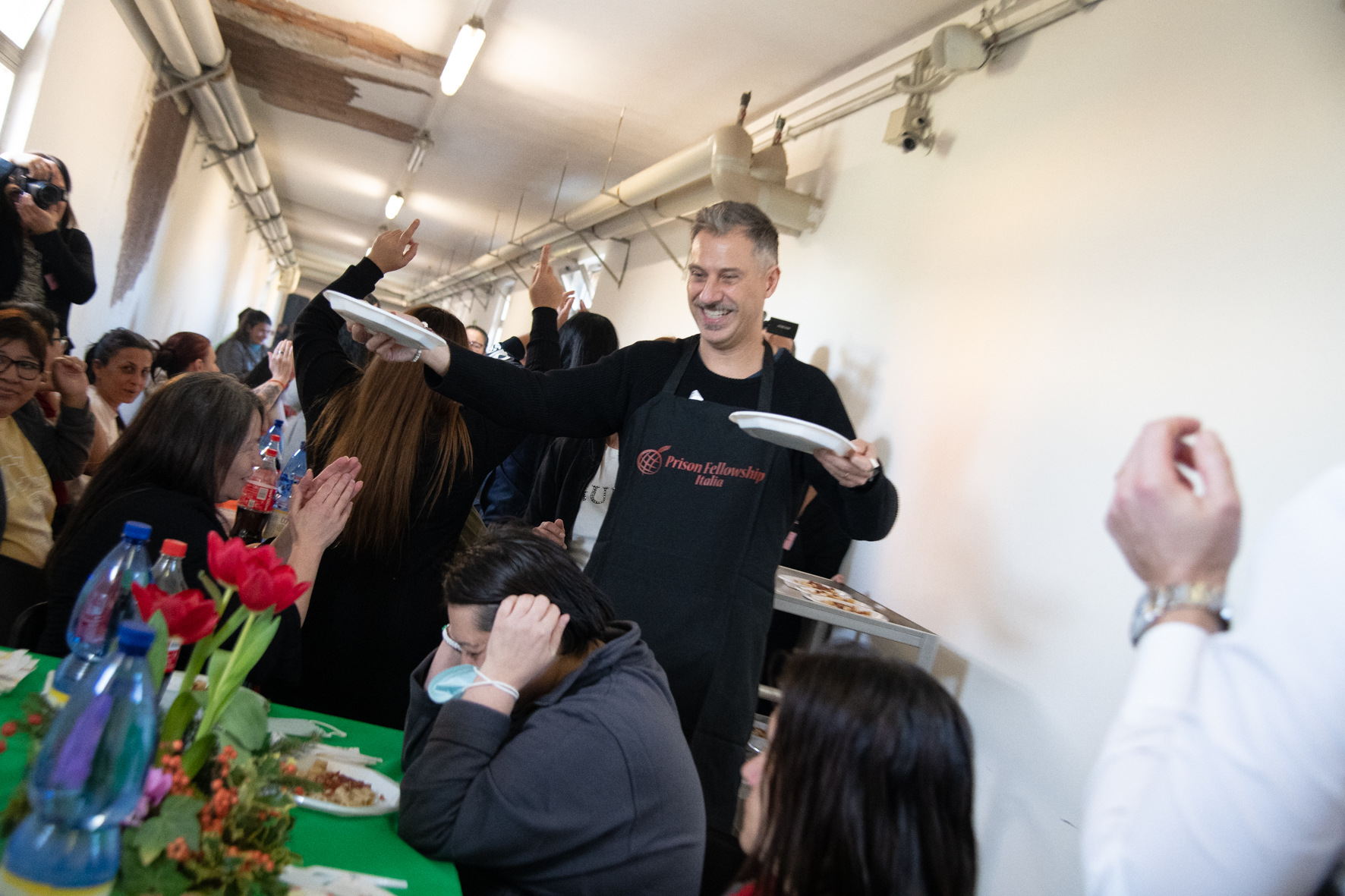 Sono state 230 a Roma le detenute che hanno partecipato al pranzo, gustando le portate preparate dallo chef Filippo La Mantia e, mentre il comico Antonio Giuliani proponeva alcuni sketch assieme a Massimo Mattia, nei panni di cameriere e camerieri di servizio ai tavoli si sono alternate Lorella Cuccarini, Gabriele Corsi e Laura Pertici, Stefano Jurgens, Ottavia Pojaghi Bettoni, Valeria Fabrizi, Maria Grazia Schiavo, Giulia Fiume, Kim Rossi Stuart, Ilaria Spada e Beatrice Fazi. “Oggi ci avete fatto il più bel regalo per i nostri 20 anni di matrimonio che festeggiamo qui in vostra compagnia”, sono state le parole di Gabriele Corsi rivolte alle detenute nella Casa circondariale. La giornata di festa romana si è svolta con un totale di circa 700 volontari impiegati per servire circa 6mila pasti anche in altri 20 carceri: Opera di Milano, Lorusso e Cutugno di Torino, Firenze, Massa, Bologna, Modena, Castelfranco Emilia, Pesaro, Secondigliano di Napoli, Salerno, Avellino, Aversa, Bari, Palmi, Vibo Valentia, Pagliarelli di Palermo, Siracusa, Cagliari, Nuoro e Lanusei.