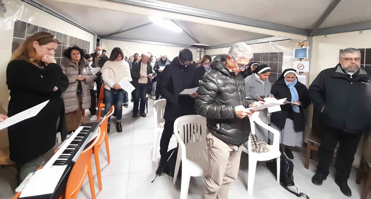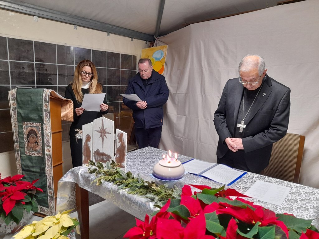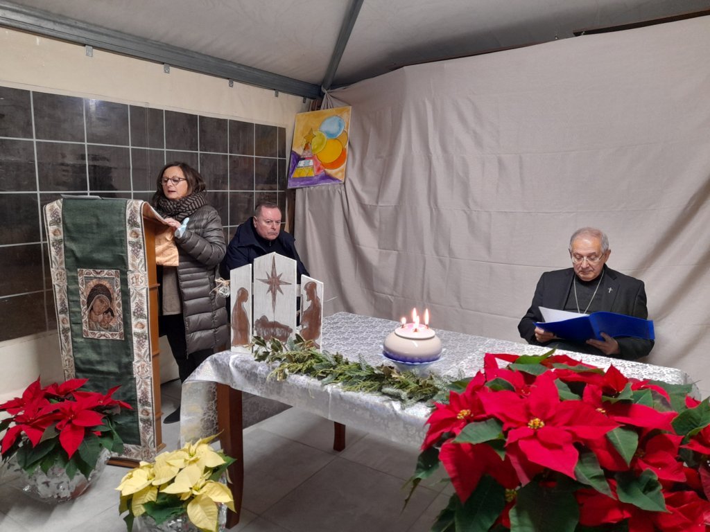 DIOCESI – Si è svolto martedì, 20 dicembre, dalle ore 19:30 in poi, presso la sede della Caritas Diocesana in San Benedetto del Tronto, l’evento dal titolo “Nessuno può salvarsi da solo – Tracciare insieme sentieri di pace”. Presenti il vescovo Carlo Bresciani, il direttore ed il vicedirettore della Caritas Diocesana, don Gianni Croci e Fernando Palestini, tutti gli operatori Caritas, professionisti e volontari, gli ospiti della Caritas che vivono nella sede e anche molte persone che abitualmente ricorrono ai servizi dell’associazione.