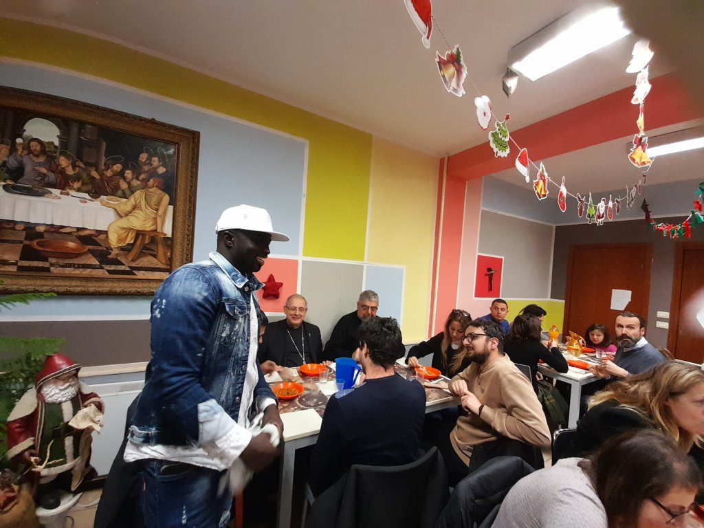 Dopo la benedizione da parte del Vescovo Carlo, tutti i presenti si sono spostati nella sala mensa della struttura per condividere insieme la cena. Il menù, completamente preparato dagli ospiti della Caritas, è stato internazionale: Fasule, piatto semplice della tradizione culinaria albanese; Mafé con riso, piatto della cucina senegalese, maliana e gambiana; Thiebou Dieune, piatto tipico senegalese; Cous Cous, piatto tipico dell’Africa del Nord; Chicken 95, piatto tipico indiano. L’incontro si è concluso con grandi sorrisi da parte di tutti.