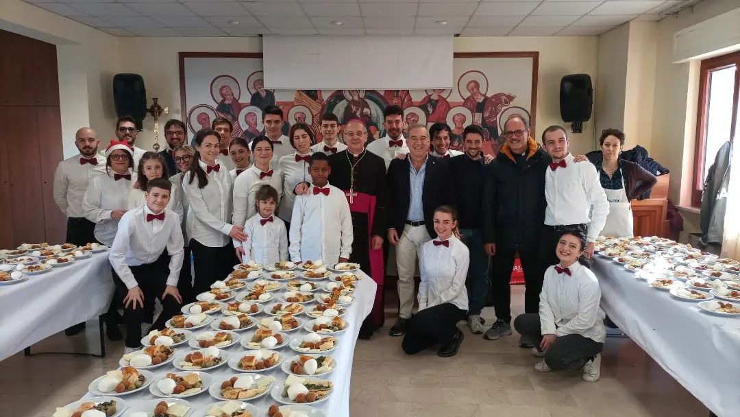Ad occuparsi dei preparativi a livello logistico e a servire a tavola sono stati i giovanissimi e i giovani della parrocchia Santissima Annunziata, della Caritas Diocesana e anche qualcuno di altre parrocchie del territorio, tutti capitanati da Chiara Santomo e Davide Amatucci. Terminata la Messa solenne di Natale delle ore 11:00, la Chiesa parrocchiale è stata completamente trasformata in una grande convivio. Tutti i banchi sono stati spostati e, al loro posto, sono stati sistemati tavoli e sedie per accogliere gli ospiti che sono accorsi numerosi: 130 sono state infatti le persone che hanno raccolto l’invito, soprattutto adulti, ma anche famiglie con bambini. Prima del pranzo i giovani, che per l’occasione si sono improvvisati camerieri, hanno ricevuto la visita a sorpresa del vescovo Carlo Bresciani il quale li ha ringraziati per il servizio svolto e li ha spronati a fare sempre di più. Il vescovo si è poi intrattenuto anche con gli ospiti del pranzo, facendo loro gli auguri e donando parole di fiducia e speranza. Più tardi sono giunti anche il primo cittadino sambenedettese Antonio Spazzafumo e l’assessore alle Politiche Sociali Andrea Sanguigni, i quali hanno salutato tutti gli invitati presenti, ringraziando gli organizzatori e i volontari per il bellissimo evento che si tiene ormai da oltre vent’anni e che è motivo di vanto per la comunità.