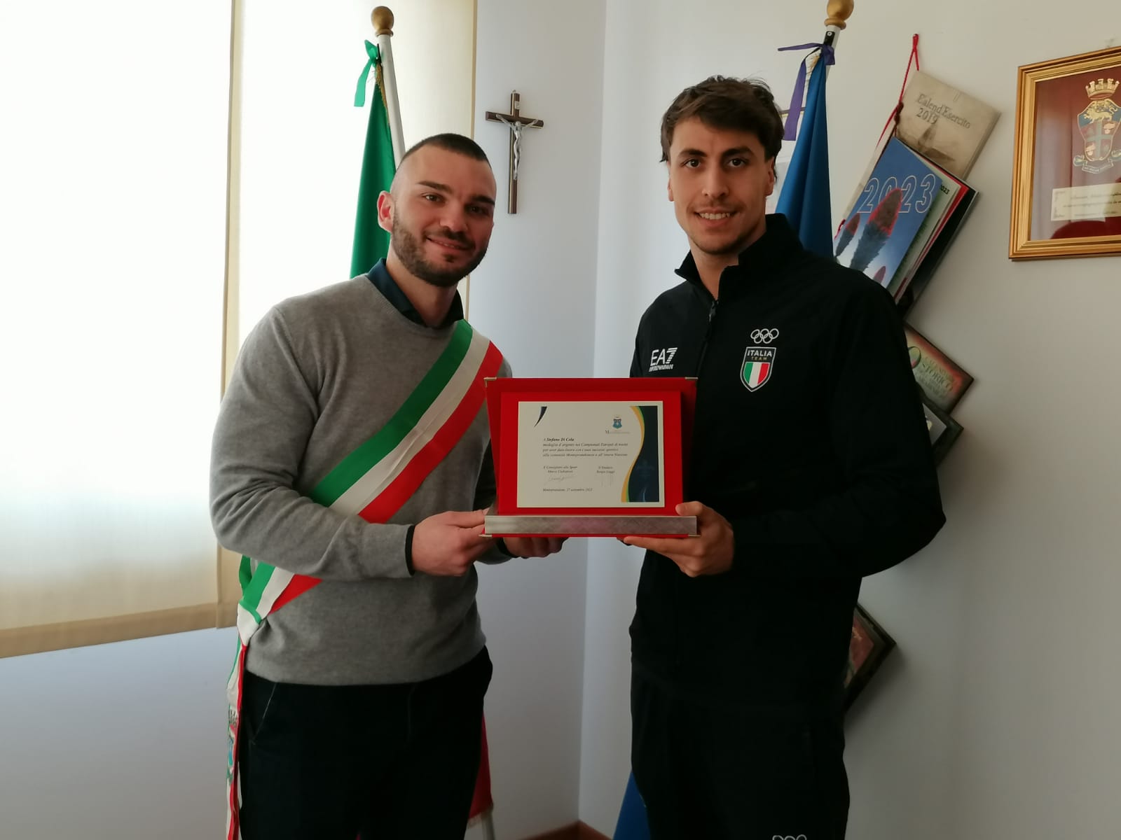 Il campione, nato a San Benedetto nel 1998, ma sempre vissuto a Centobuchi con la famiglia, ha ricevuto un riconoscimento dal Consigliere Comunale con delega allo sport Marco Ciabattoni.