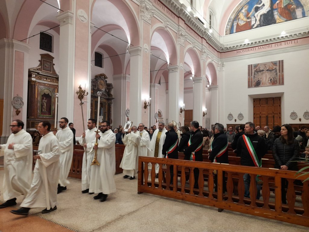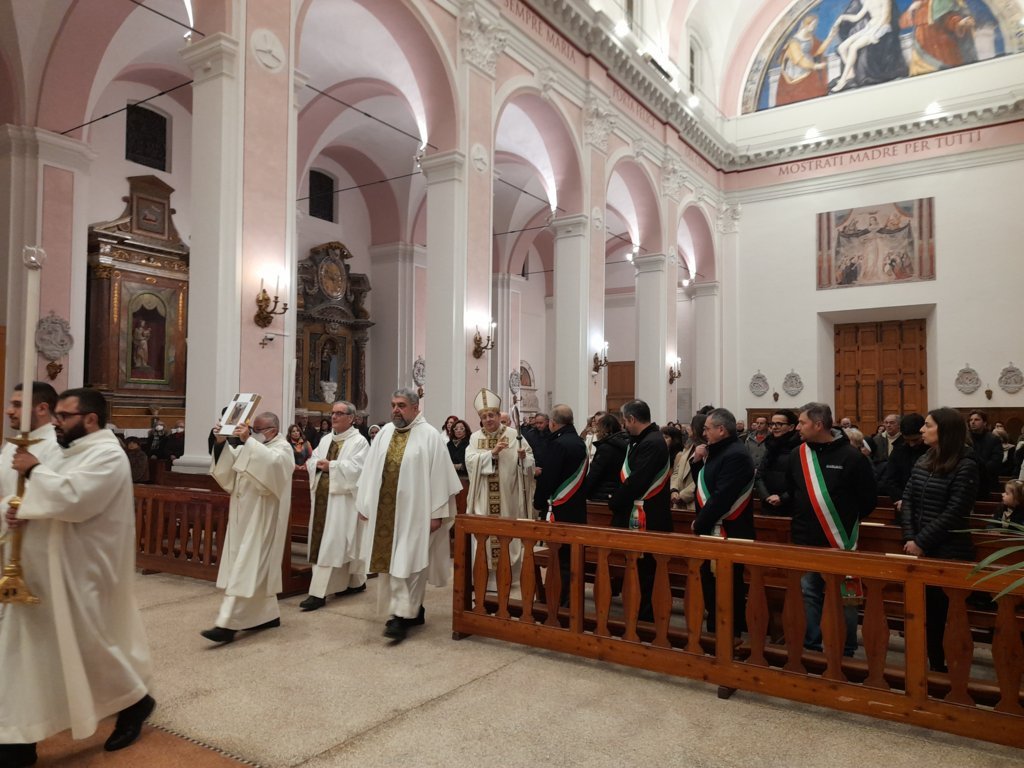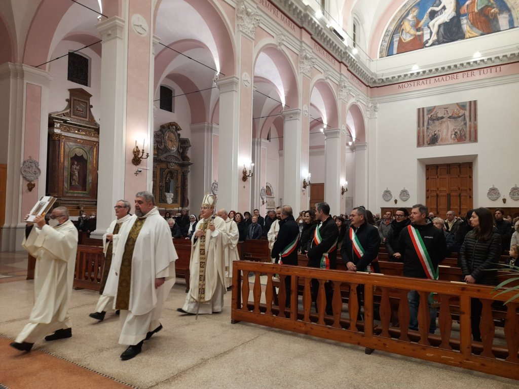 DIOCESI – Si è svolta domenica, 1 gennaio 2023, alle ore 18:00, presso la Cattedrale Santa Maria della Marina la consueta Celebrazione Eucaristica di inizio anno a cui sono stati invitati tutti gli amministratori dei Comuni della Diocesi di San Benedetto del Tronto – Ripatransone – Montalto. La Messa, presieduta dal vescovo Carlo Bresciani, è stata concelebrata dal vicario generale don Patrizio Spina, dai due viceparroci della parrocchia Santa Maria della Marina don Luciano Paci e don Romualdo Scarponi e dai diaconi Walter Gandolfi ed Emanuele Imbrescia ed ha inoltre registrato la partecipazione di molti amministratori locali. In prima fila il primo cittadino Sambenedettese Antonio Spazzafumo, il vicesindaco del comune di Grottammare Alessandro Rocchi, il Consigliere del Comune di Comunanza Luigi Contisciani e l’Assessore del Comune di Ripatransone Roberto Pasquali.