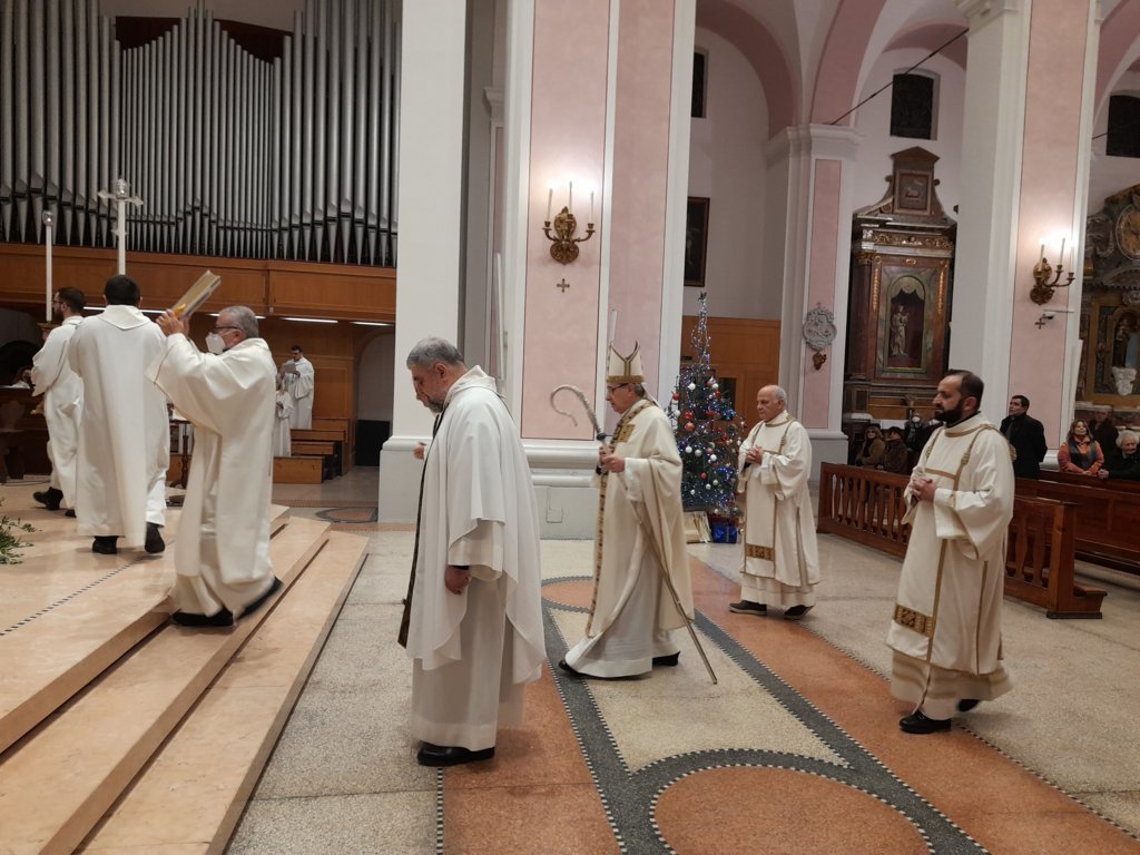 Due i temi su cui il Vescovo Bresciani si è soffermato durante l’omelia: la ricorrenza della Maternità di Maria e la Giornata Mondiale per la Pace. Queste le sue parole: “L’anno nuovo inizia sotto la protezione di Maria. La liturgia ci invita, infatti, a contemplare la sua divina maternità, icona sicura di pace, come è chiunque dona e non toglie la vita. Maria non solo dona la vita, la dona al Figlio stesso di Dio. A lui dona la vita, a noi e al mondo dona lui, Gesù. La maternità è icona di pace, perché rimanda alla custodia e alla cura della vita, rimanda a coloro che donano parte di se stessi – del proprio tempo, delle proprie fatiche e dei propri sacrifici – per la vita degli altri. La madre, infatti, dona il suo corpo, perché il figlio abbia un corpo e con esso la vita nel mondo. La madre dona le sue fatiche, perché il figlio cresca e diventi uomo. Vorrei fermarmi questa sera su questi due temi che caratterizzano questa giornata di inizio anno e che mi sembrano strettamente connessi: la maternità e la giornata mondiale di preghiera per la pace.