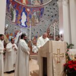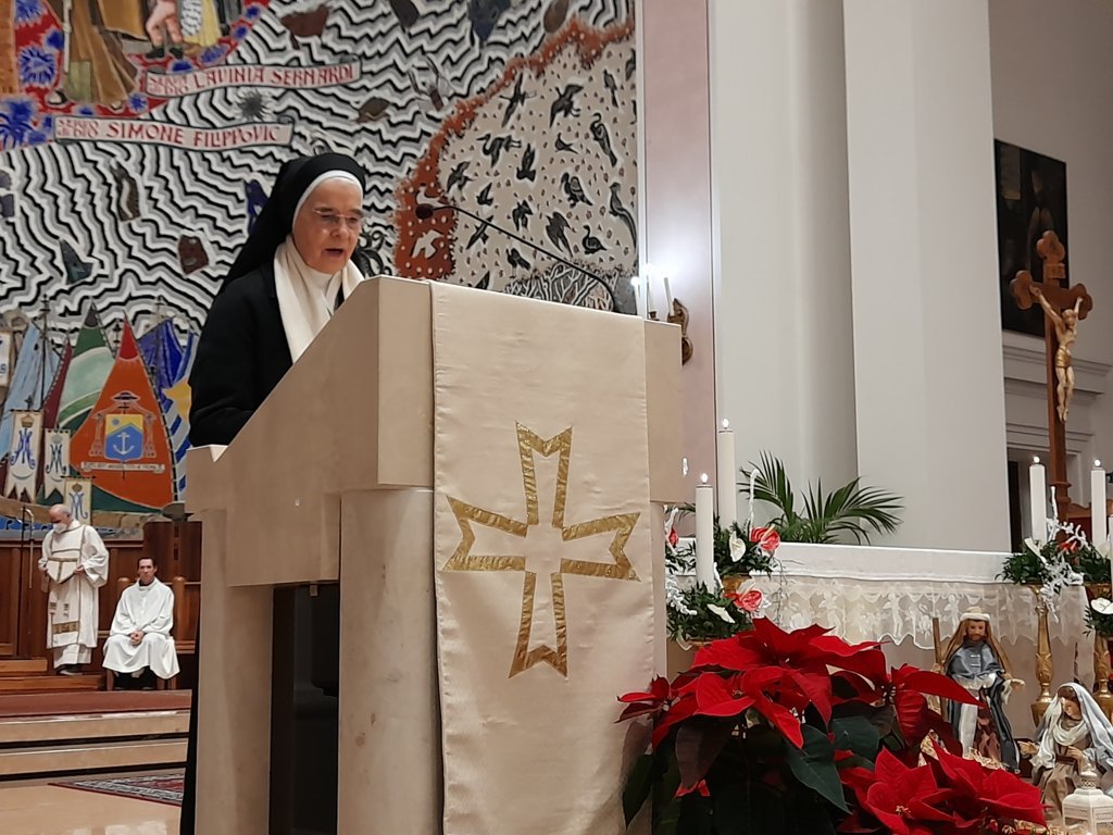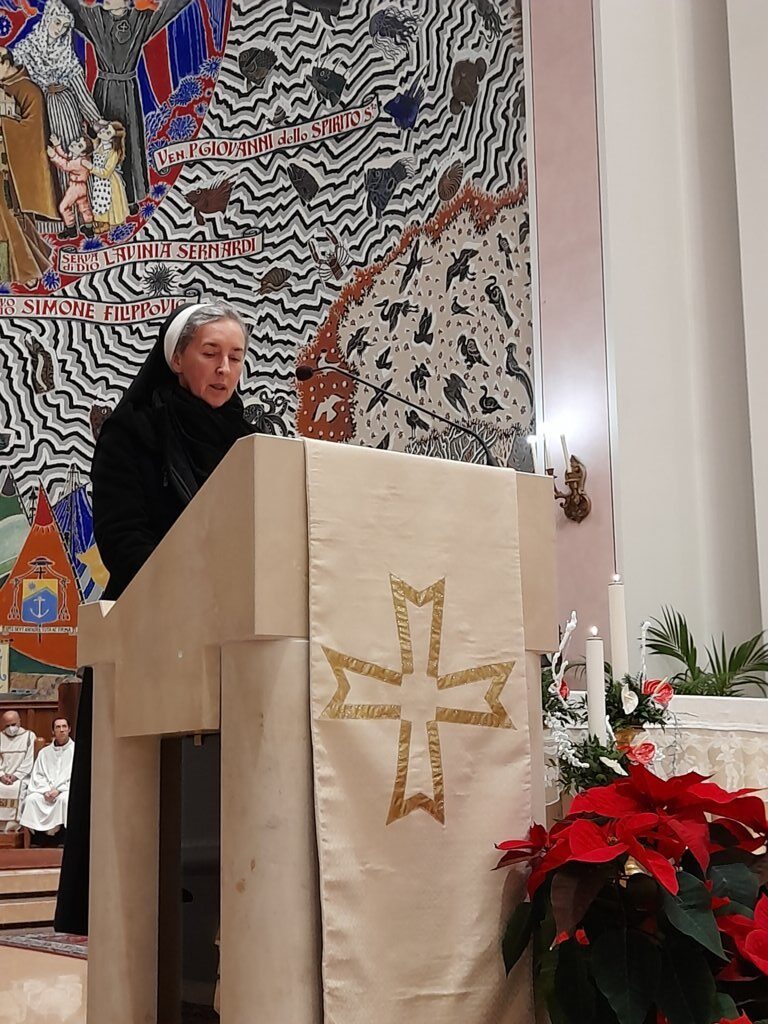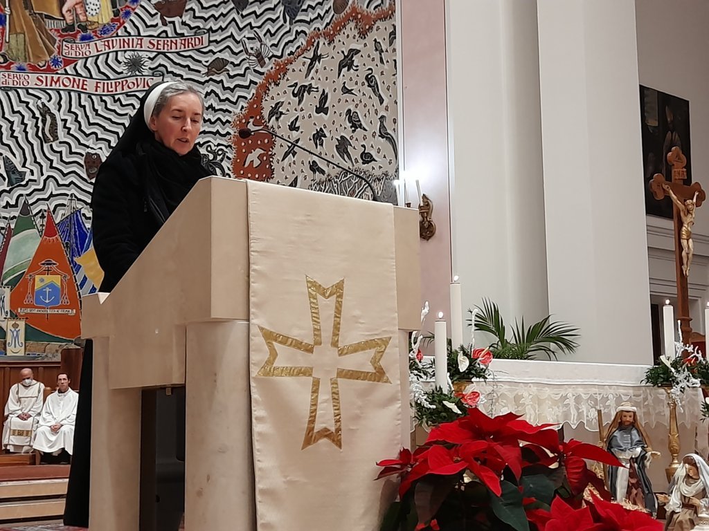 Tutto questo, carissimi, non sarà mai possibile se ce lo aspettiamo solo dagli altri e non incominciamo da noi stessi, se non incominciamo noi a costruire relazioni di pace e di giustizia. Se ce le aspettiamo solo dagli altri e non incominciamo da noi, saremo destinati solo a lamentarci, perché quello che desideriamo non c’è o non ci viene dato, saremo sempre pronti ad accusare gli altri e, così facendo, non solo non creeremo relazioni pacifiche, ma peggioreremo anche quelle che ci sono. Impariamo da Maria che, più che lamentarsi, prende su di sé quanto comporta quella maternità eccezionale e imprevista e quanto richiede la cura della vita che gli è affidata. Non limitiamoci a pregare per la pace nel mondo, cosa che anche noi questa sera facciamo in modo particolare pensando all’assurda, drammatica e folle guerra di sanguinosa invasione dell’Ucraina. Diventiamo costruttori di relazioni di pace tra di noi, nelle nostre case, nelle nostre famiglie, nelle nostre comunità. La nostra sarà una preghiera che non viene da un rifiuto di assumerci la nostra personale responsabilità, ma riconosce che parte dal riconoscere che tutti, e noi per primi, abbiamo bisogno di conversione, cioè di cambiare modo di pensare e di agire, se non vogliamo che la preghiera sia sterile o semplicemente uno scarico su Dio di responsabilità che spettano solo a ciascuno di noi. Maria non scarica la sua responsabilità, la assume fino in fondo, fino ai piedi della croce e forse è proprio lì che la sua maternità ha il suo pieno compimento, in quel suo modo di stare lì, impotente fisicamente. Mentre dona al figlio tutto il suo amore di madre, diventa la perfetta icona della pace.