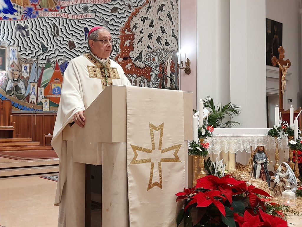 Ad introdurre la Santa Messa è stato il prof. Fernando Palestini, direttore dell’Ufficio Comunicazioni Sociali nonché vicedirettore della Fondazione Caritas San Benedetto del Tronto ETS, il quale ha salutato gli amministratori presenti ed ha così affermato: “Papa Francesco ci dice che dalla crisi non si esce mai uguali, o si esce migliorati o peggiorati. All’inizio è sembrato che ne fossimo usciti migliori, con una certa propensione alla vicinanza verso l’altro che ci è accanto; poi, con il tempo, invece, ci siamo resi conto che questo senso di fraternità, che in un primo momento ci aveva legato, è stato messo in discussione dalla rabbia e dalla paura da cui molti sono stati presi e dalle tante difficoltà che tutti abbiamo dovuto affrontare, ma in particolar modo i più deboli, i più soli. Così scrive papa Francesco in occasione della Giornata Mondiale per la Pace: ‘Avendo toccato con mano la fragilità che contraddistingue la realtà umana e la nostra esistenza personale, possiamo dire che la più grande lezione, che il Covid-19 ci lascia in eredità, è la consapevolezza che abbiamo tutti bisogno gli uni degli altri, che il nostro tesoro più grande, seppure anche più fragile, è la fratellanza umana, fondata sulla comune figliolanza divina, e che nessuno può salvarsi da solo. È urgente dunque ricercare e promuovere insieme i valori universali che tracciano il cammino di questa fratellanza umana’. E ancora: ‘Non possiamo più pensare solo a preservare lo spazio dei nostri interessi personali o nazionali, ma dobbiamo pensarci alla luce del bene comune, con un senso comunitario, ovvero come un “noi” aperto alla fraternità universale. Non possiamo perseguire solo la protezione di noi stessi, ma è l’ora di impegnarci tutti per la guarigione della nostra società e del nostro pianeta, creando le basi per un mondo più giusto e pacifico, seriamente impegnato alla ricerca di un bene che sia davvero comune’. È con queste parole che vogliamo iniziare l’anno per impegnarci ad essere davvero operatori di pace”.