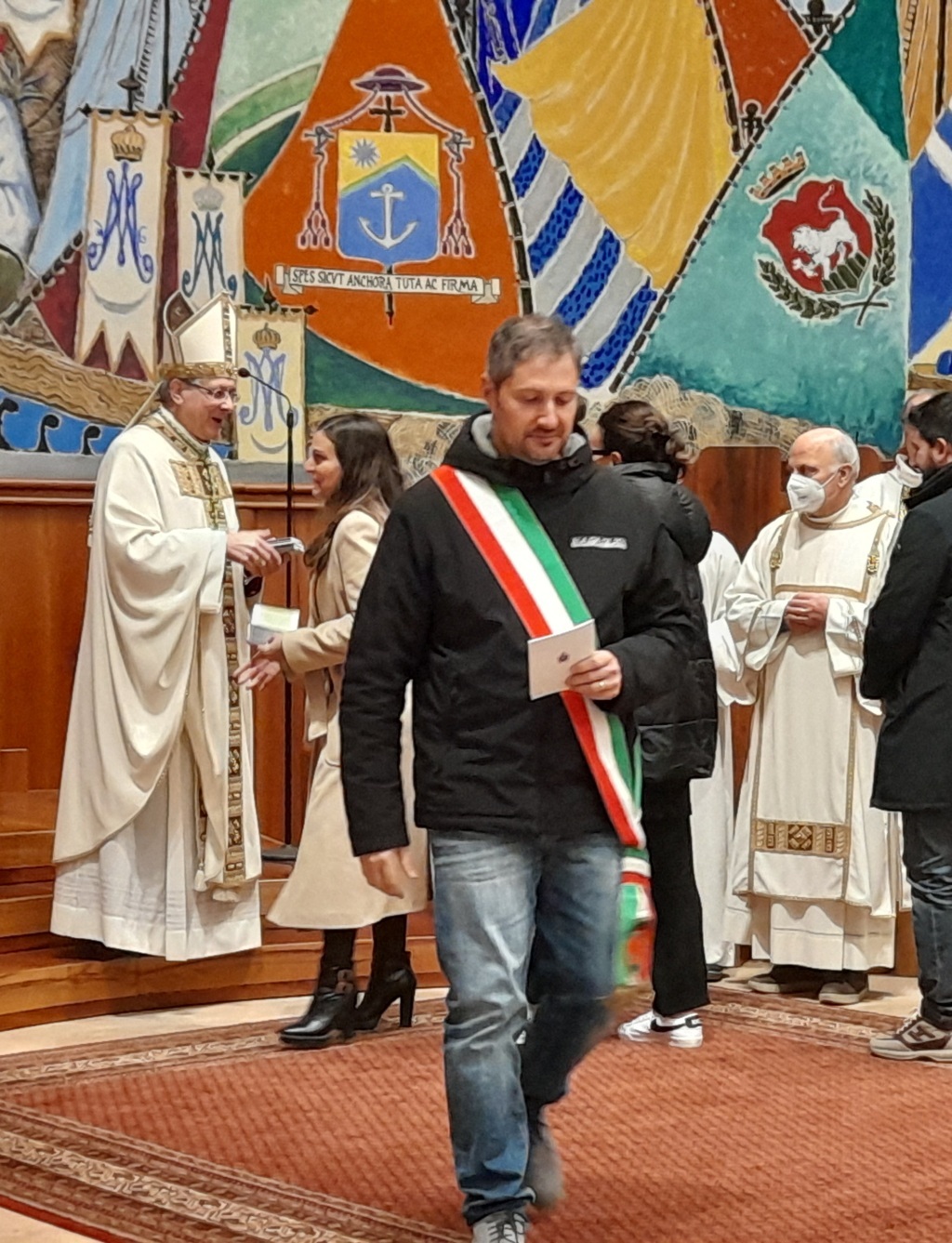 Al termine dei riti di comunione, prima della benedizione finale, il prof. Palestini ha invitato tutti gli amministratori presenti a salire sull’altare per ricevere, direttamente dalle mani del vescovo Bresciani, il messaggio di papa Francesco per la 56° Giornata Mondiale della Pace, con l’auspicio ad essere tutti operatori di pace.