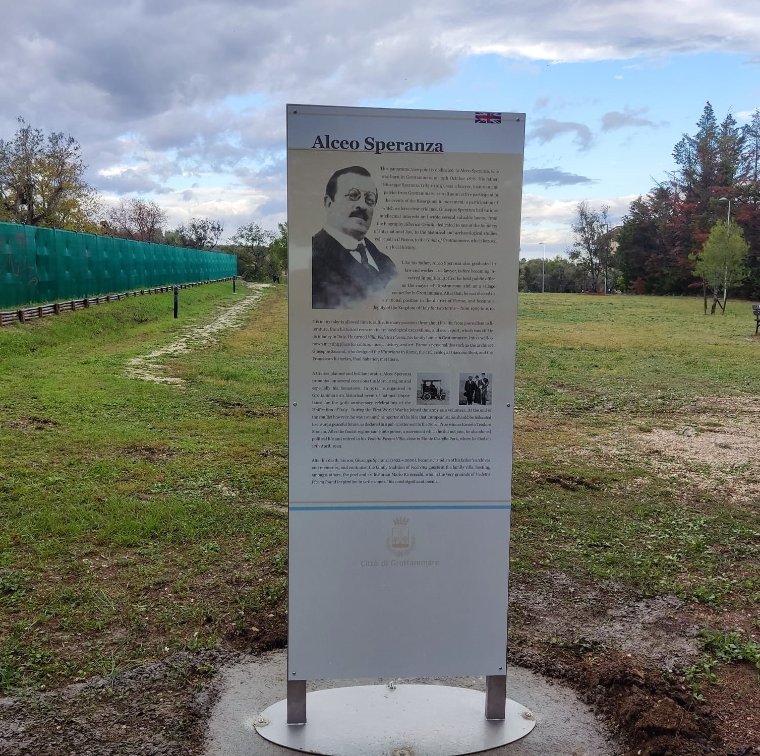 Figlio di uno dei maggiori patrioti del Risorgimento (Giuseppe Speranza, al quale è intitolato l’edificio scolastico in via Garibaldi), Alceo Speranza è stato scrittore versatile, avvocato, giornalista, storico combattente nella prima guerra mondiale (dove raggiunse il grado di colonnello del Genio) e, dal 1909 al 1919, deputato del collegio di Fermo in rappresentanza del Partito Radicale. Dottore in legge, forbito scrittore di cose locali, fu Sindaco di Ripatransone a soli 25 anni, successivamente Consigliere e poi Sindaco di Grottammare, Deputato di Fermo nel 1909, rieletto poi nel 1913. A Moresco, cittadina dell’entroterra ascolano, Alceo Speranza fu fautore, nel 1910, dell’indipendenza dal comune di Moresco da quello di Monterubbiano. Nel 1911, organizzò a Palazzo Laureati i festeggiamenti per il 50° della venuta di Vittorio Emanuele II a Grottammare (12 ottobre 1860) e in quella occasione furono inaugurati, per sua iniziativa, il monumento dell’Unità d’Italia situato sulla pineta Ricciotti, il busto a Giuseppe Garibaldi in P.zza Garibaldi e il Tirassegno. Nella sua proprietà presso la Vedetta Picena aveva creato un museo di patrie memorie e un luogo di incontro per artisti e per organizzatori di eventi culturali tesi sempre a promuovere e far conoscere la cittadina di Grottammare. Non sono mancati riconoscimenti e onorificenze da parte di varie accademie nazionali.