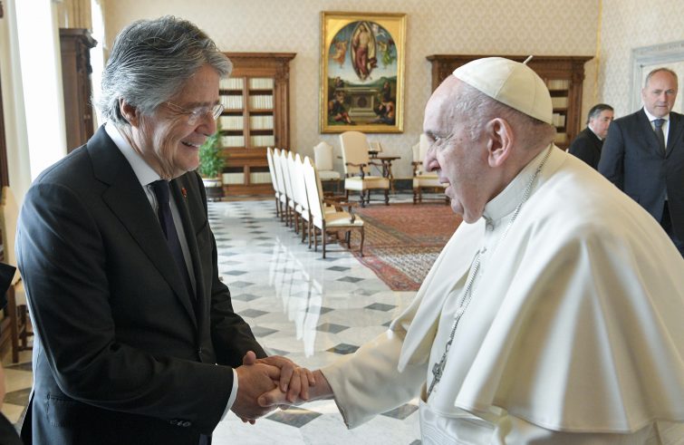 Papa Francesco ha ricevuto questa mattina in udienza, nel Palazzo Apostolico Vaticano, il presidente della Repubblica dell’Ecuador, Guillermo Lasso Mendoza, il quale, successivamente, ha incontrato il card. Pietro Parolin, Segretario di Stato, accompagnato da mons. Paul Richard Gallagher, segretario per i Rapporti con gli Stati e le Organizzazioni internazionali. Lo ha reso noto la Sala Stampa della Santa Sede, spiegando che “nel corso dei cordiali colloqui in Segreteria di Stato è stato espresso apprezzamento per il contributo che la Chiesa offre nell’ambito dell’educazione, della salute, della promozione dei valori umani e spirituali e nel campo delle attività caritative, sottolineando l’importanza di un dialogo sincero e permanente tra la Chiesa e lo Stato per affrontare le sfide fondamentali della società”. “Inoltre – viene sottolineato –, c’è stato un fruttuoso scambio di vedute sulla situazione politica e sociale della Regione, con attenzione agli sforzi miranti a favorire lo sviluppo e a promuovere la pace e ci si è soffermati su alcuni temi di comune interesse quali la tutela della vita, la cura dell’infanzia, la riforma del sistema penitenziario, il rispetto delle popolazioni indigene e della loro cultura, nonché la protezione dell’ambiente”.