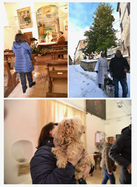 La giornata di domenica è stata dedicata, poi, alla parte religiosa dell’evento. Il maltempo ha impedito che si procedesse, al termine della Santa Messa e come di consueto, alla processione con la statua di Sant’Antonio Abate accompagnata dalla banda, ma Don Giorgio Carini (Priore-Parroco della parrocchia di San Michele Arcangelo) ha voluto essere sotto alla scalinata della Chiesa di Sant’Agostino per procedere alla benedizione degli animali. Per l’occasione sono state distribuite anche le buonissime e particolari “Panette” da dare agli animali (ma, a quanto pare, molto gradite anche agli “umani”) ed anche il calendario “Lunario del Campagnolo” di Sant’Antonio Abate.