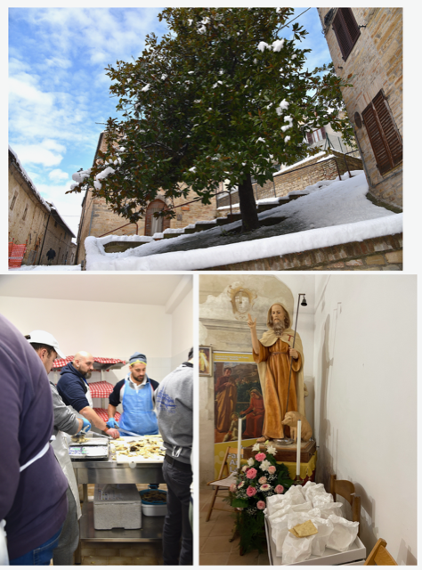 E tutto questo nonostante un tre giorni di maltempo che poteva rovinare la festa: freddo e neve si sono riversati su Montelparo mettendo in apprensione chi qui doveva venire ed a repentaglio l’iniziativa. L’ottima organizzazione del “Comitato di Sant’Antonio Abate” però, con il decisivo intervento dei mezzi e degli uomini dell’Amministrazione Comunale, ha saputo gestire e superare anche questa non semplice difficoltà!