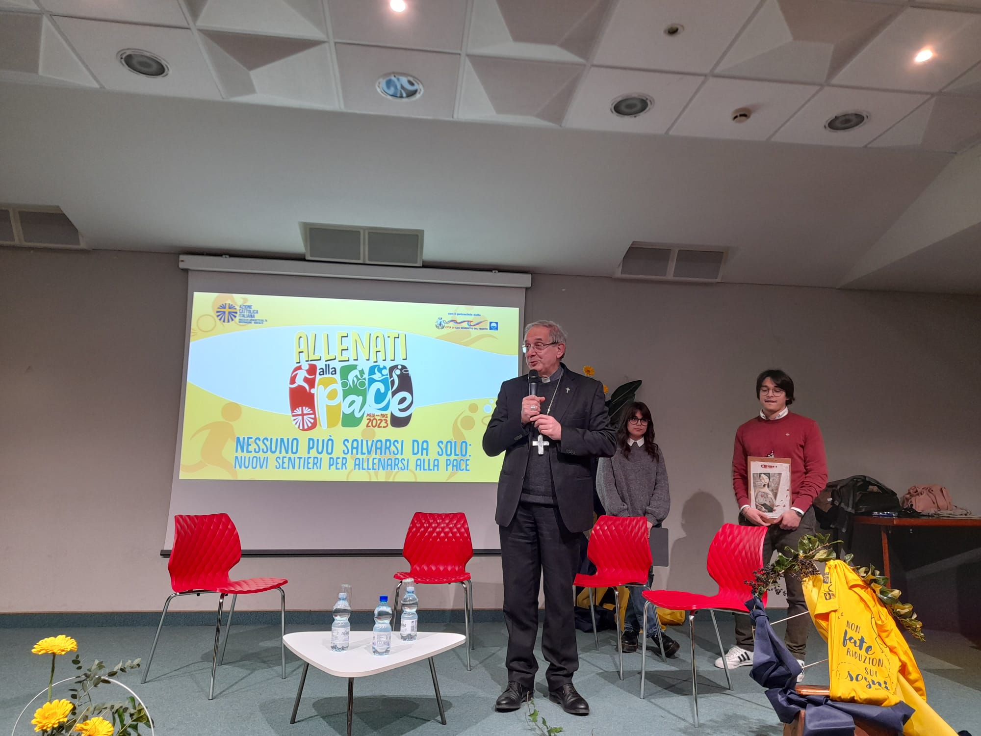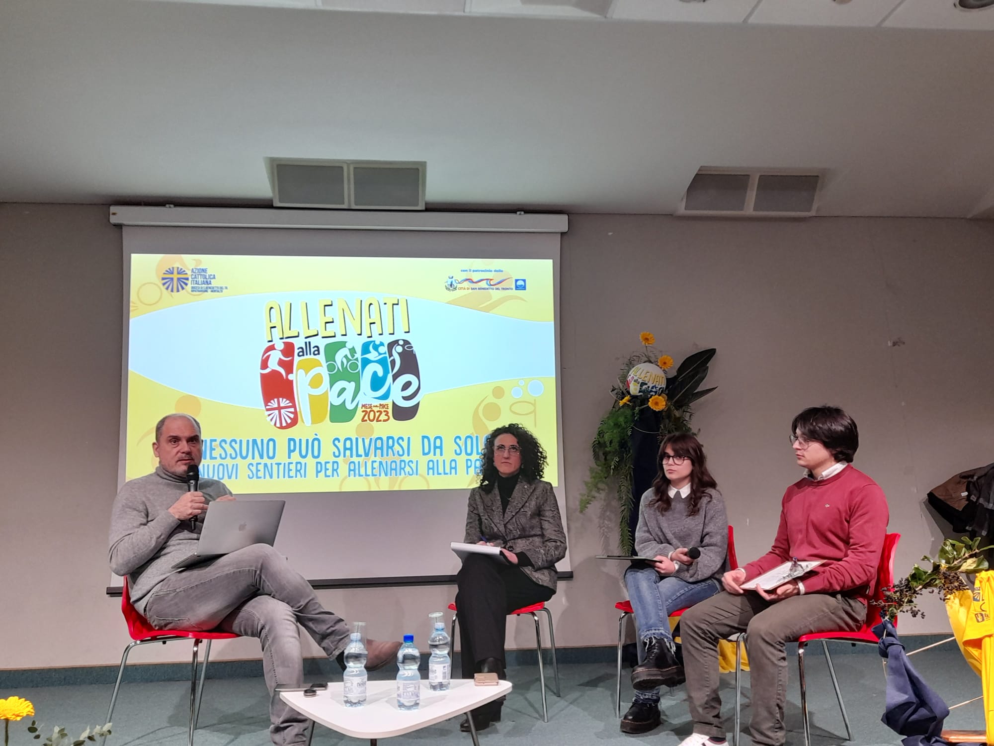 SAN BENEDETTO DEL TRONTO – Si è svolto venerdì 27 gennaio, alle ore 21:15, presso l’auditorium comunale Tebaldini di San Benedetto del Tronto, un incontro organizzato dall’Azione Cattolica della Diocesi di San Benedetto del Tronto – Ripatransone – Montalto sul tema “Nessuno può salvarsi da solo: nuovi sentieri per allenarsi alla pace”. Ospite d’onore il prof. Giuseppe Notarstefano, presidente nazionale dell’Azione Cattolica. Presenti all’evento il vescovo Carlo Bresciani, l’assessore Andrea Sanguigni ed altri sacerdoti della Diocesi.